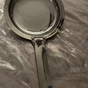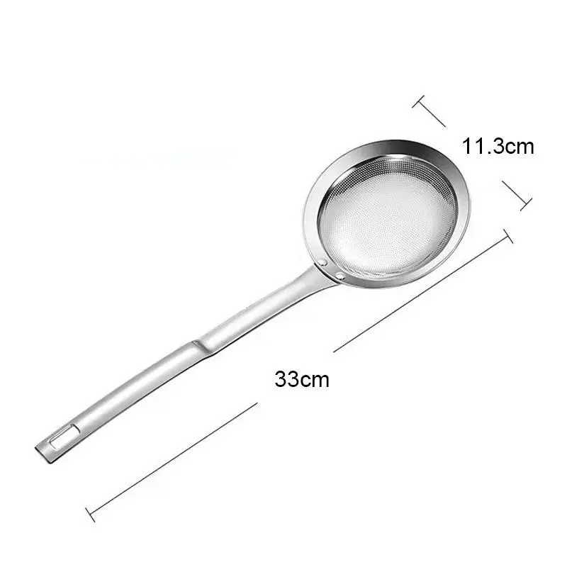 3. The filter mesh and handle are firmly attached, filter mesh is fine enough to pick up the smallest fat partides. A hole in Heat-Resistant Round handle allows for easy storage.