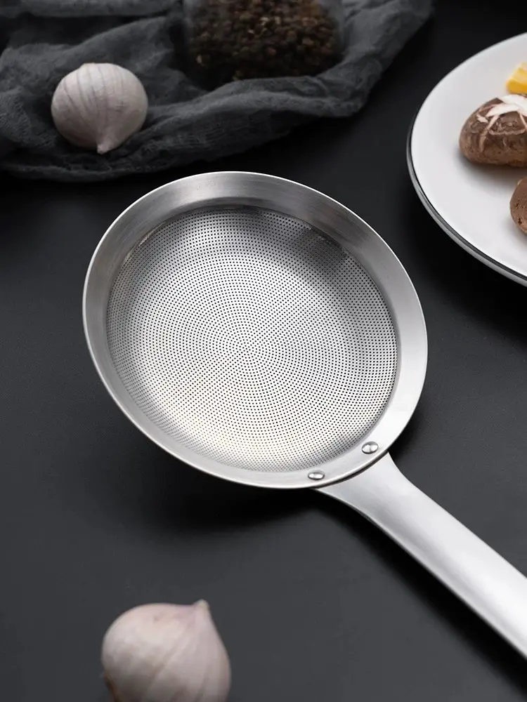 2. The filter basket of Stainless Steel Strainer is uniform and dense, so it can greatly improve the filtration efficiency of frying and cooking, and it is more convenient to use.