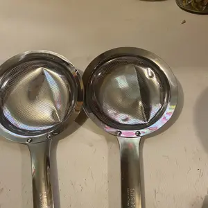 3. The filter mesh and handle are firmly attached, filter mesh is fine enough to pick up the smallest fat partides. A hole in Heat-Resistant Round handle allows for easy storage.