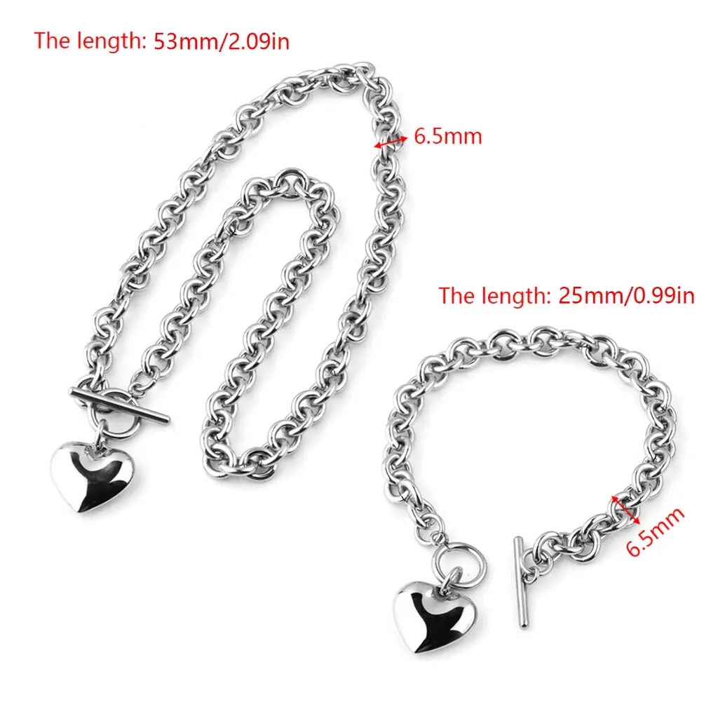 Attractive Stainless Steel Chain Heart Shaped Toggle Bracelet Pendant Necklace