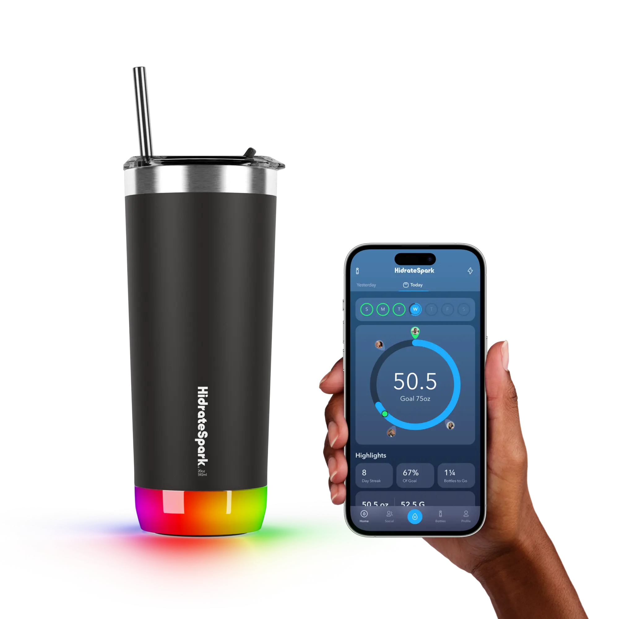 The finish on the bottle provides for a firm grip and the handle to carry it is sturdy. The reminders, light and sound, have helped me reach my hydration goals and i feel much less lethargic now. Tracking of the volume of water is very accurate in my opinion. The only thing i am disappointed with is that i have to pay for the āin appā extras to get some features that you need like the type of drink you drink. It offers a few free ones like water and coffee but not milk or juice (i expected at least those). Iām still happy with my purchase.