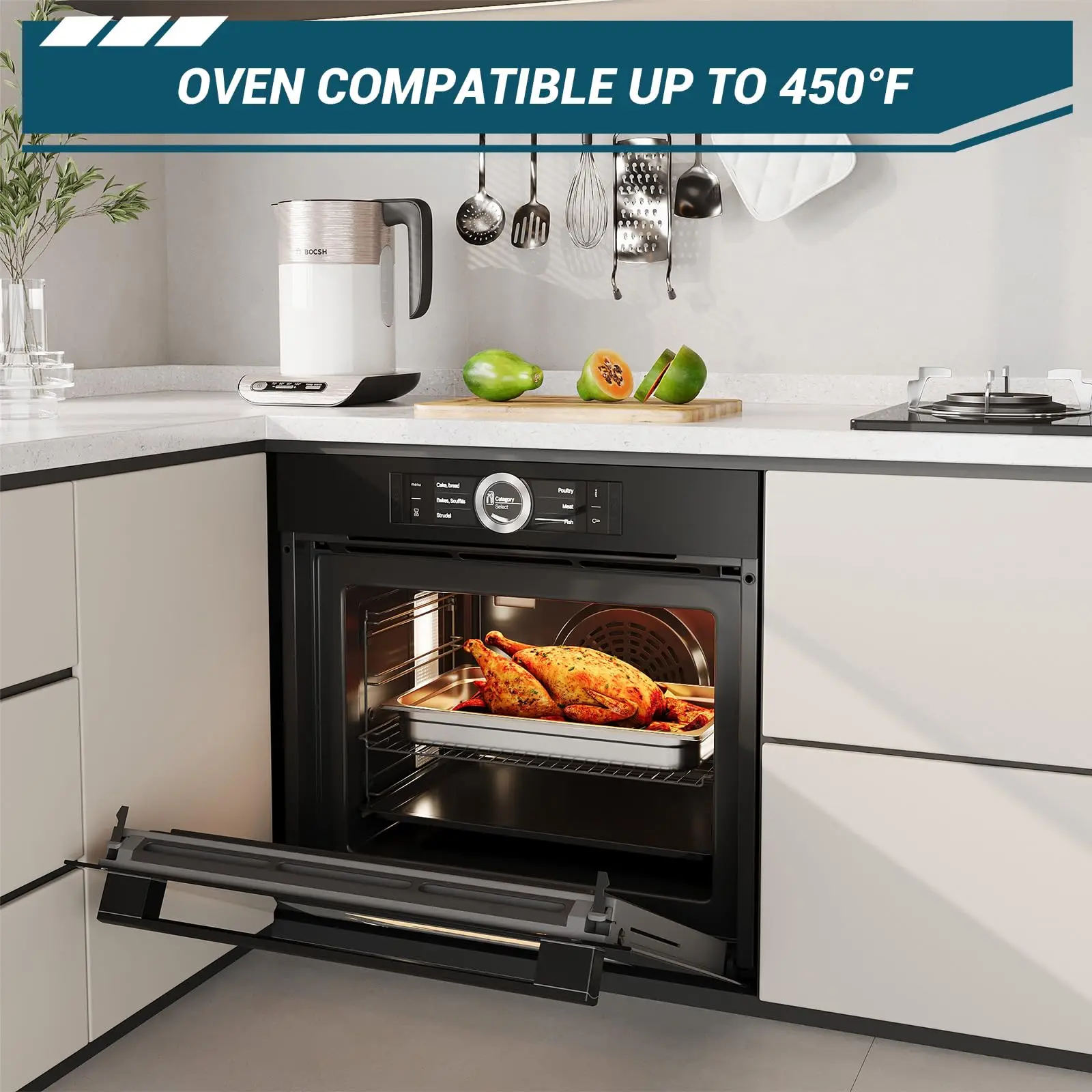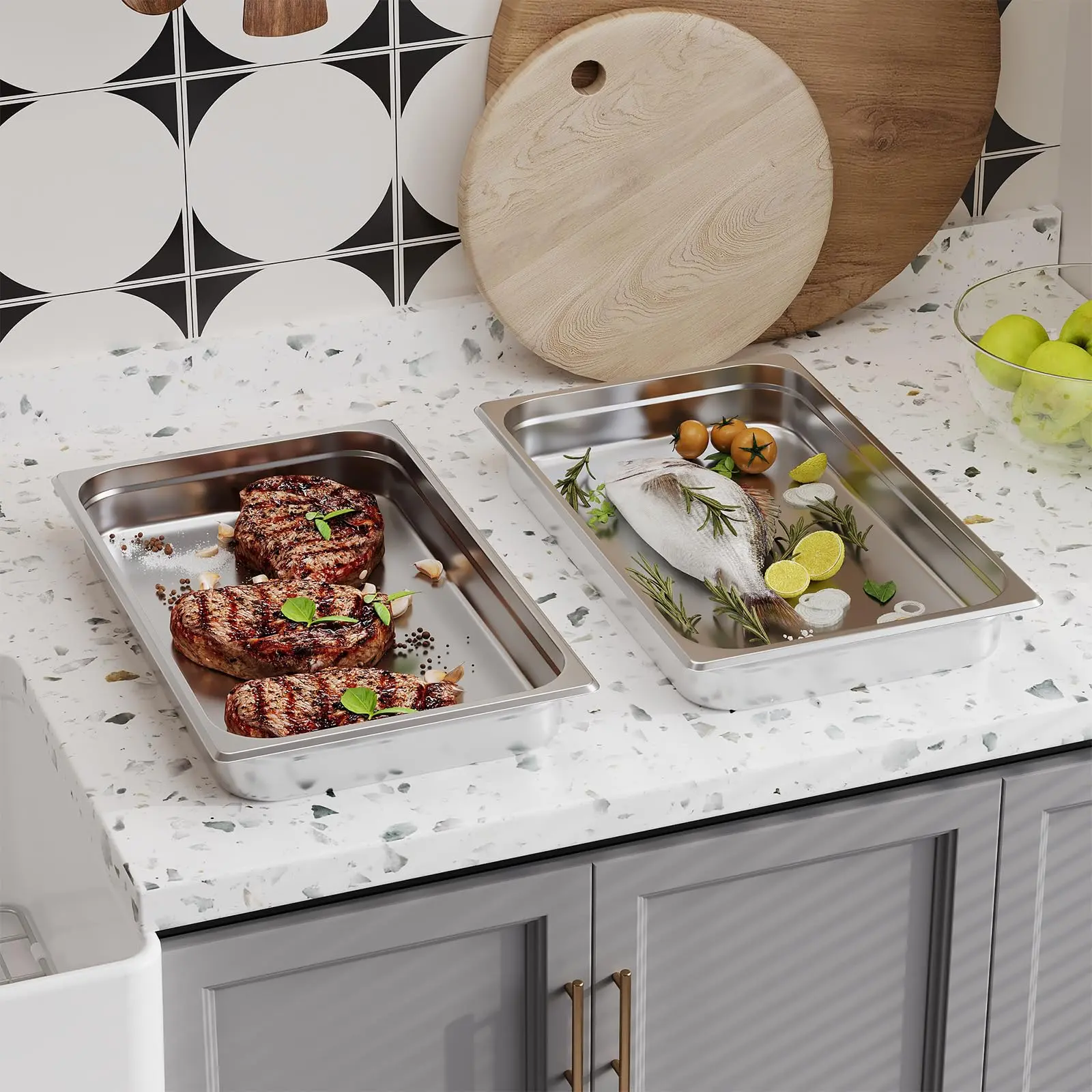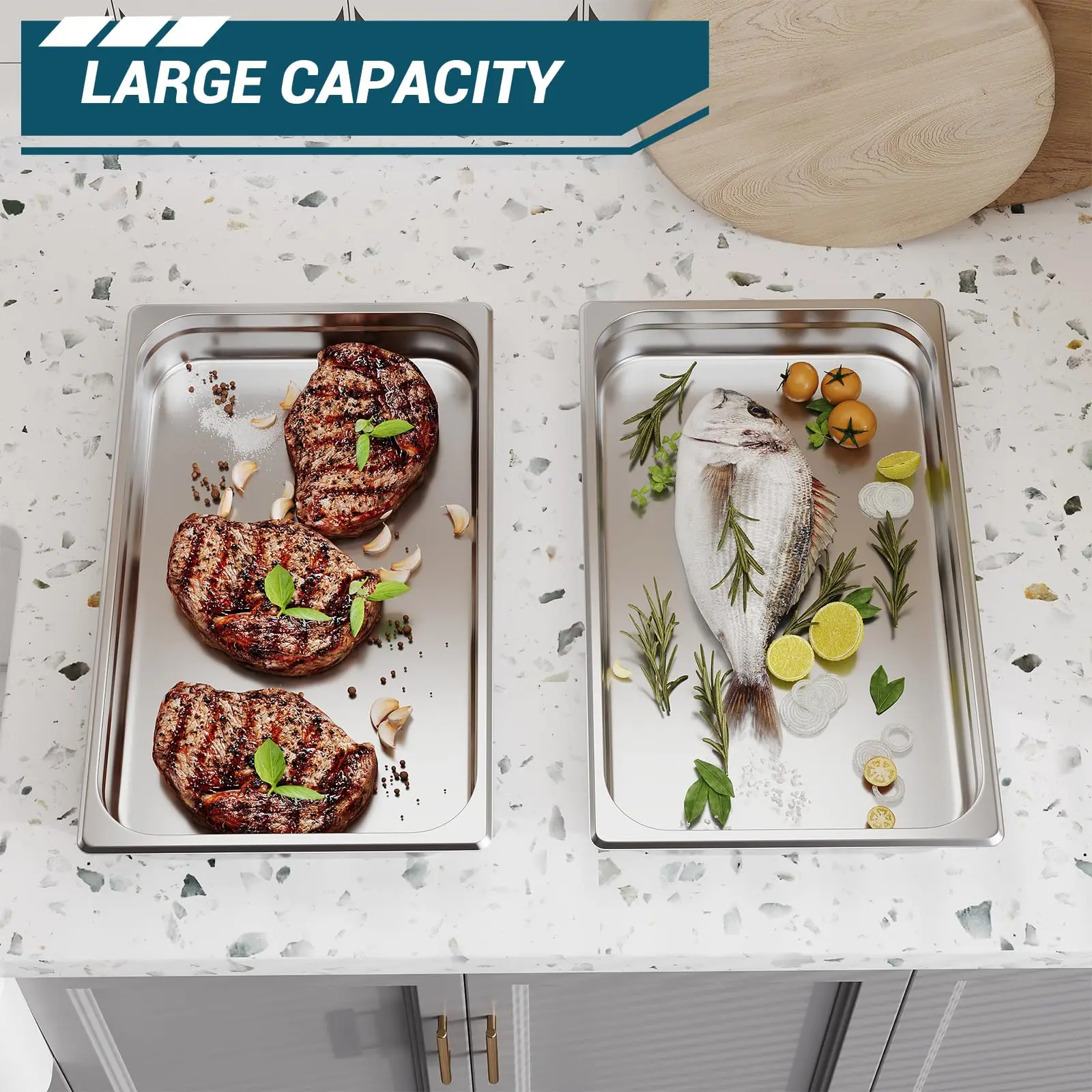 · Versatile for All Cooking Needs: The deep pans handle temperatures up to 450°F, making them ideal for ovens, steam tables, and chafing dishes. Perfect for hot and cold foods, they accommodate various dishes, including lasagna, ribs, salads, and desserts