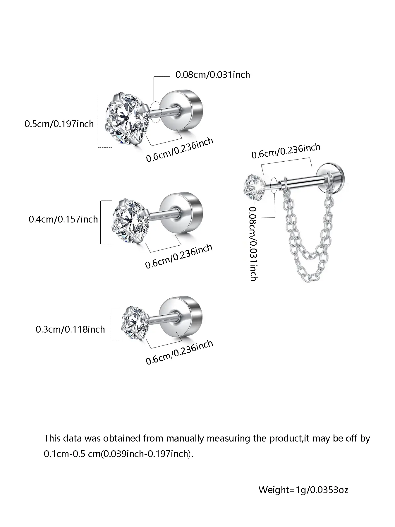 【Size Range】: Available in multiple sizes from 3mm to 5mm, accommodating various preferences for earring size.