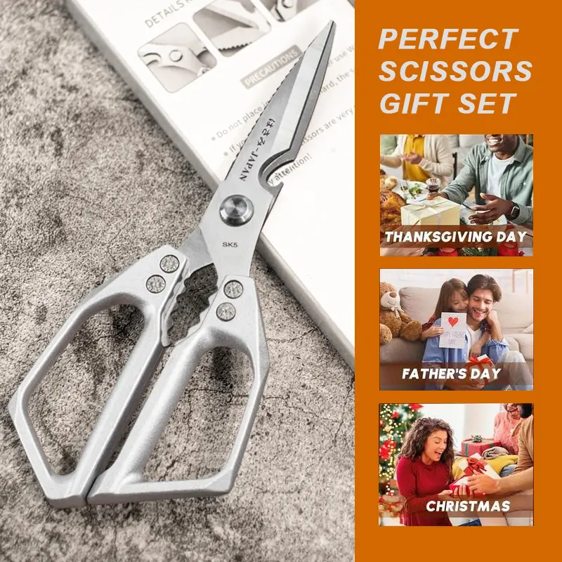 Crafted from high-quality Japanese stainless steel, these kitchen shears feature ultra-sharp blades that tackle tough tasks—chicken bones, turkey joints, raw meat, vegetables, and even cardboard. Rust-resistant and durable, they maintain sharpness for long-term use, replacing multiple tools in your kitchen.