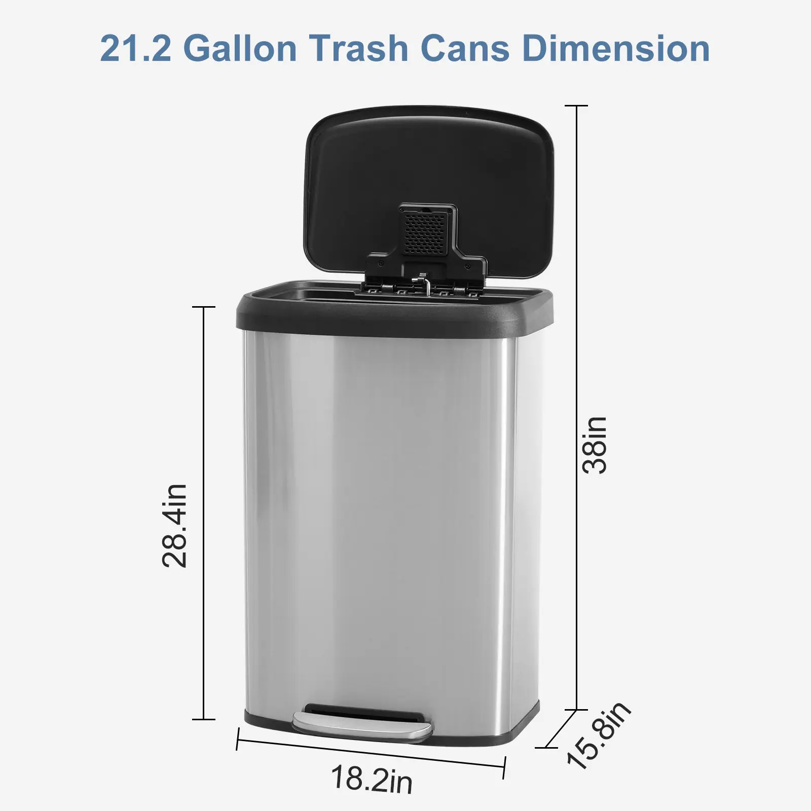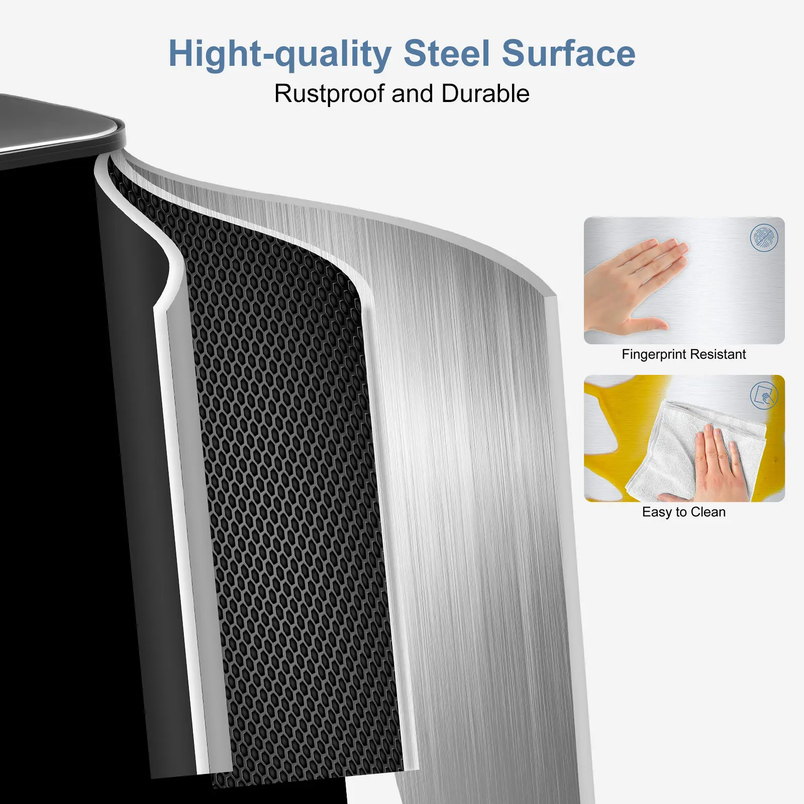 ·[Fingerprint-Proof Stainless Steel]stainless steel kitchen trash can crafted from high-quality stainless steel that effectively resists fingerprints, smudges,rust,and scratches.A quick wipe is all it takes to maintain its sleek, clean look—perfect for busy kitchens and modern homes.