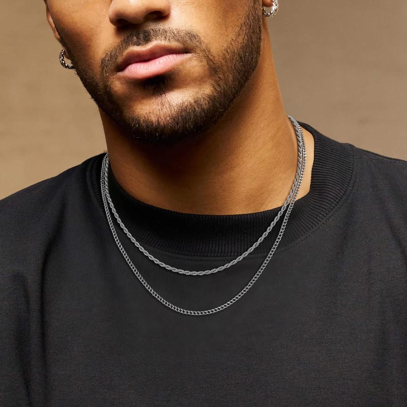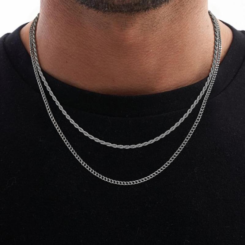 Crafted from stainless steel, these necklaces are built to last. The layered design adds depth and style. Ideal for those who appreciate modern, versatile jewelry. The set includes two chains, ensuring you have options for different outfits.