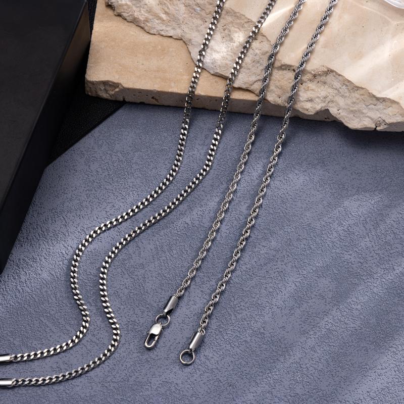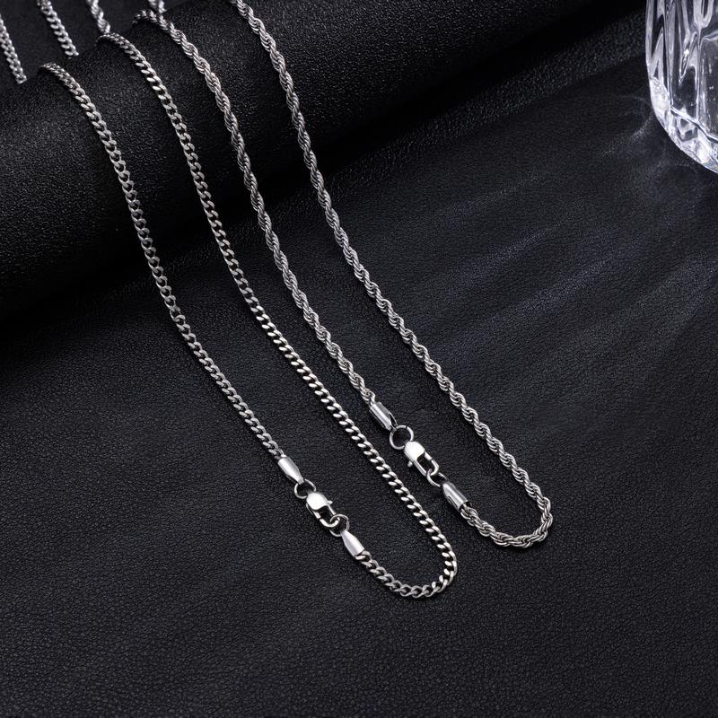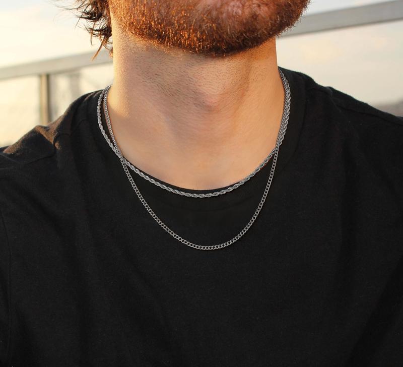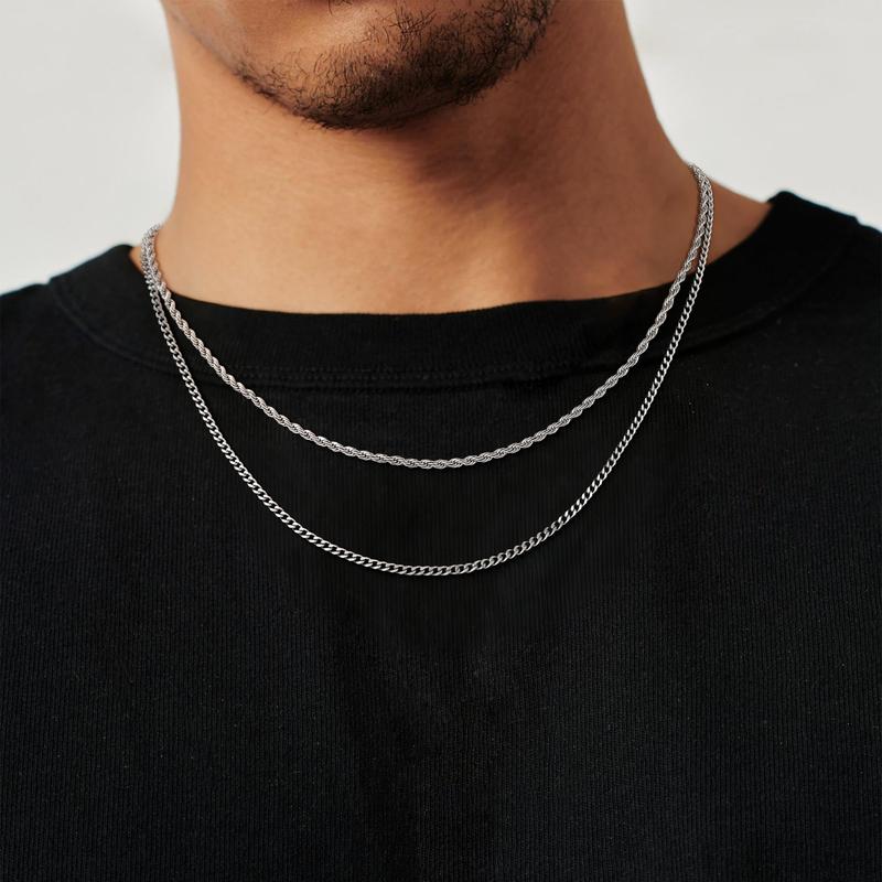 Dearmay Stainless Steel Layered Chain Necklaces for Men and Boys. This set includes 2Pcs Cuban Link/Rope/Herringbone Chains, perfect as jewelry gifts. Choose from various lengths: 18"/20", 20"/22", 22"/24", 24"/26", 26"/28". Each chain offers a unique look, suitable for different occasions.