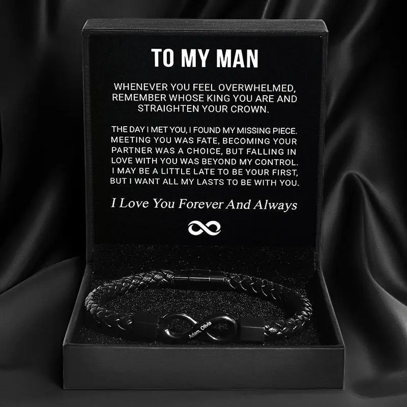 🌟 8-Word Stainless Steel Black Handmade Leather Men's Bracelet 🌟