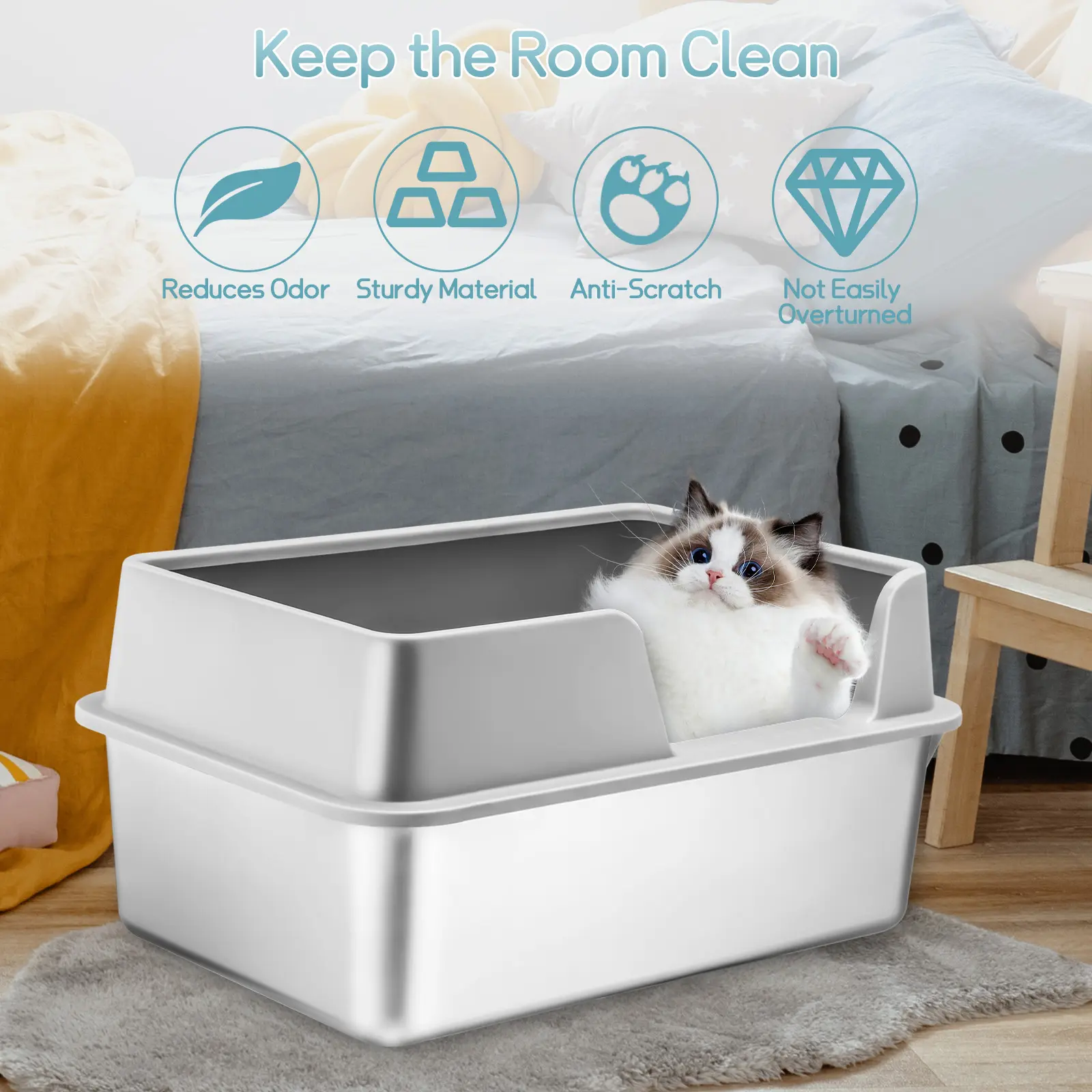 ·Design: Deep curved high wall prevents urine leakage and minimizes tracking. 🛡️
