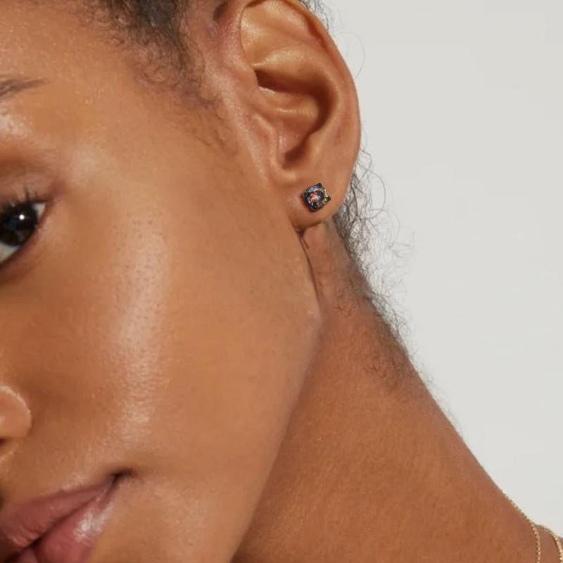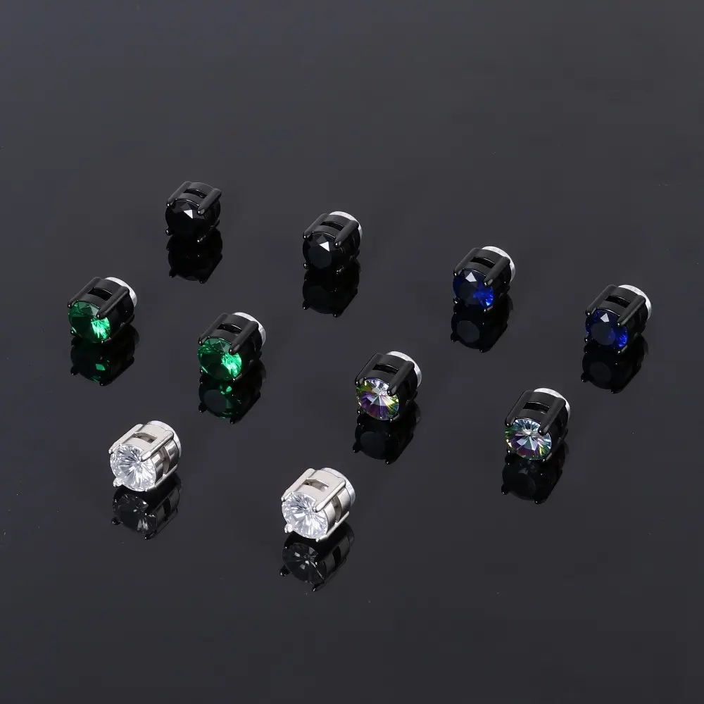 ·Design: Round CZ studs in 5 colors: Silver-tone, Black.