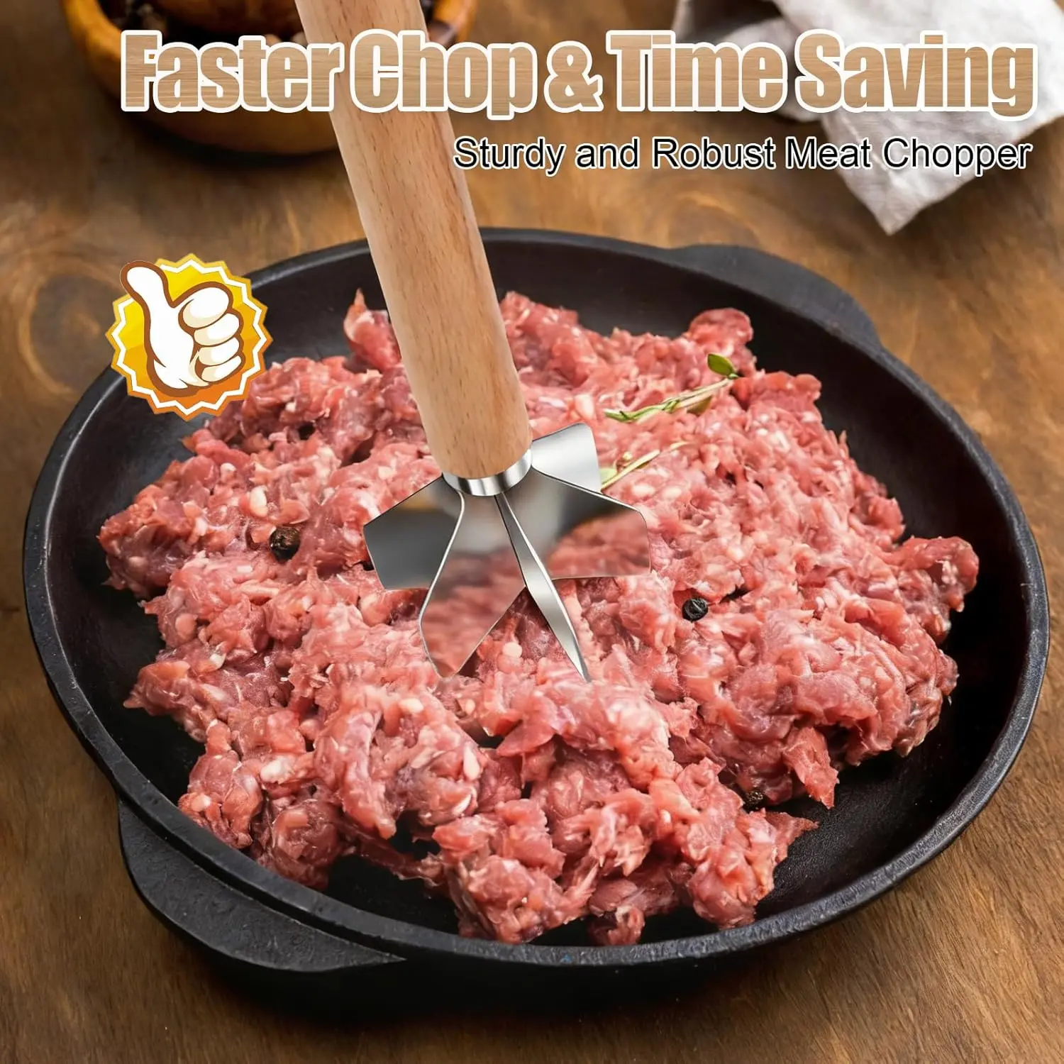 ·Say No to Plastic: This stainless steel meat chopper is a must have kitchen tool If you are trying to eliminate plastic utensils. Compared with plastic meat chopper tools, when using it to mash the ground meat, you don't have to worry about plastic fragments peeling off, dissolving and remaining in the food. It's time to say goodbye to plastic.