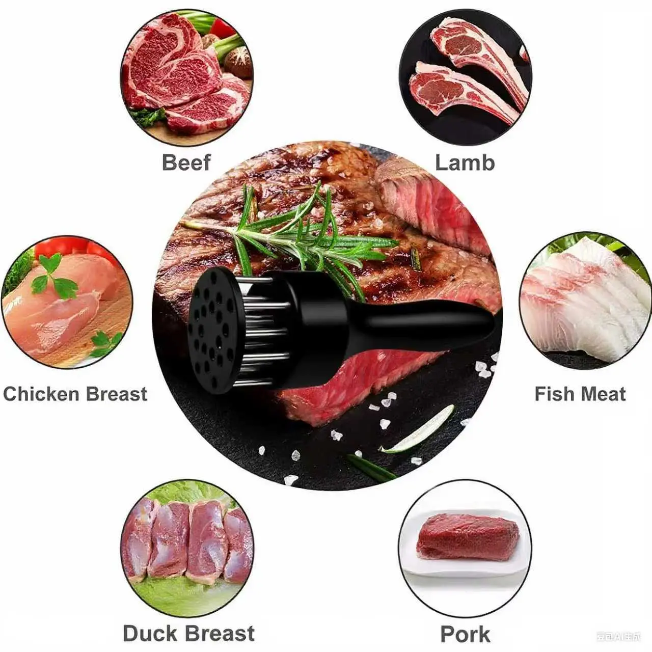 ·Sharp Needle Side – Penetrates meat fibers to enhance flavor absorption and reduce cooking time.