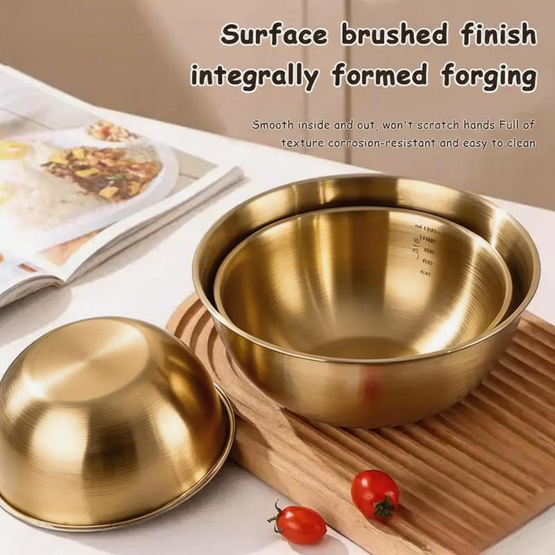 Made from durable, rust and corrosion-resistant stainless steel, these bowls are food-grade safe and BPA-free. The brushed metal design ensures long-lasting use. They are gentle on utensils and help keep storage neat and efficient. 🌟