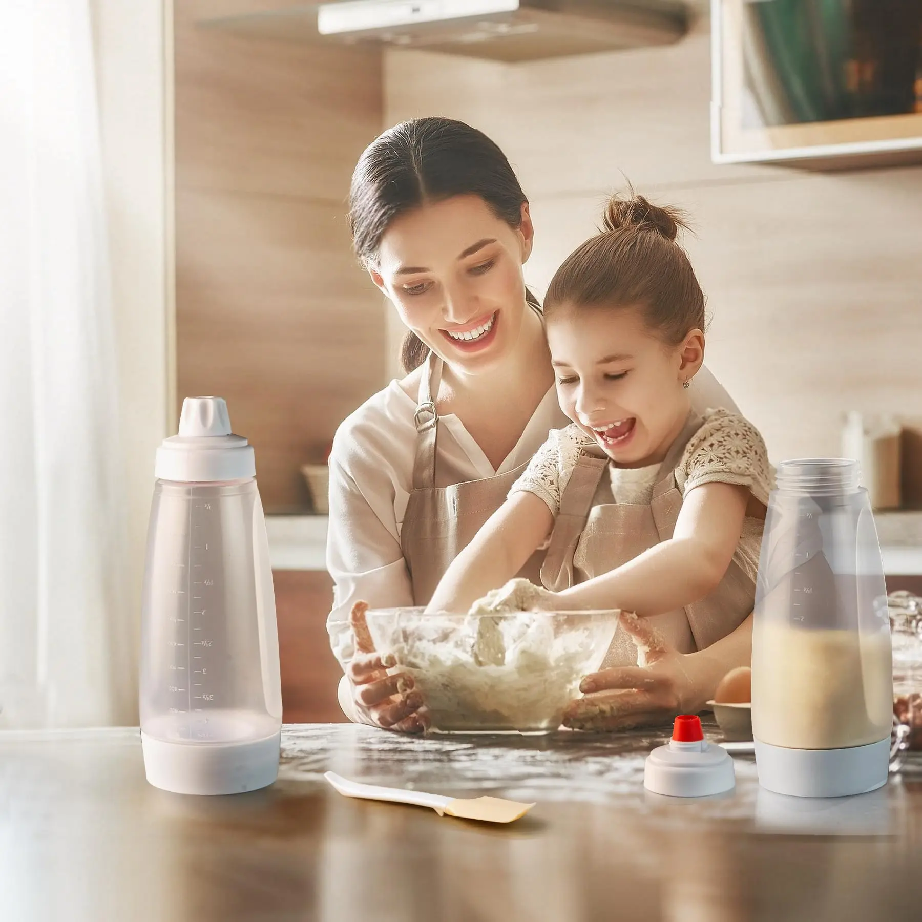 【Easy to use】Ergonomic squeeze bottle design with soft-touch grip offers perfect batter flow regulation. Draw intricate pancake art or portion uniform muffins. The drip-resistant Will not melt when touching the baking sheet or baking paper