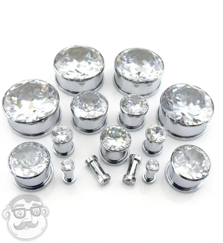 Faceted Gem CZ Top Stainless Steel Plugs