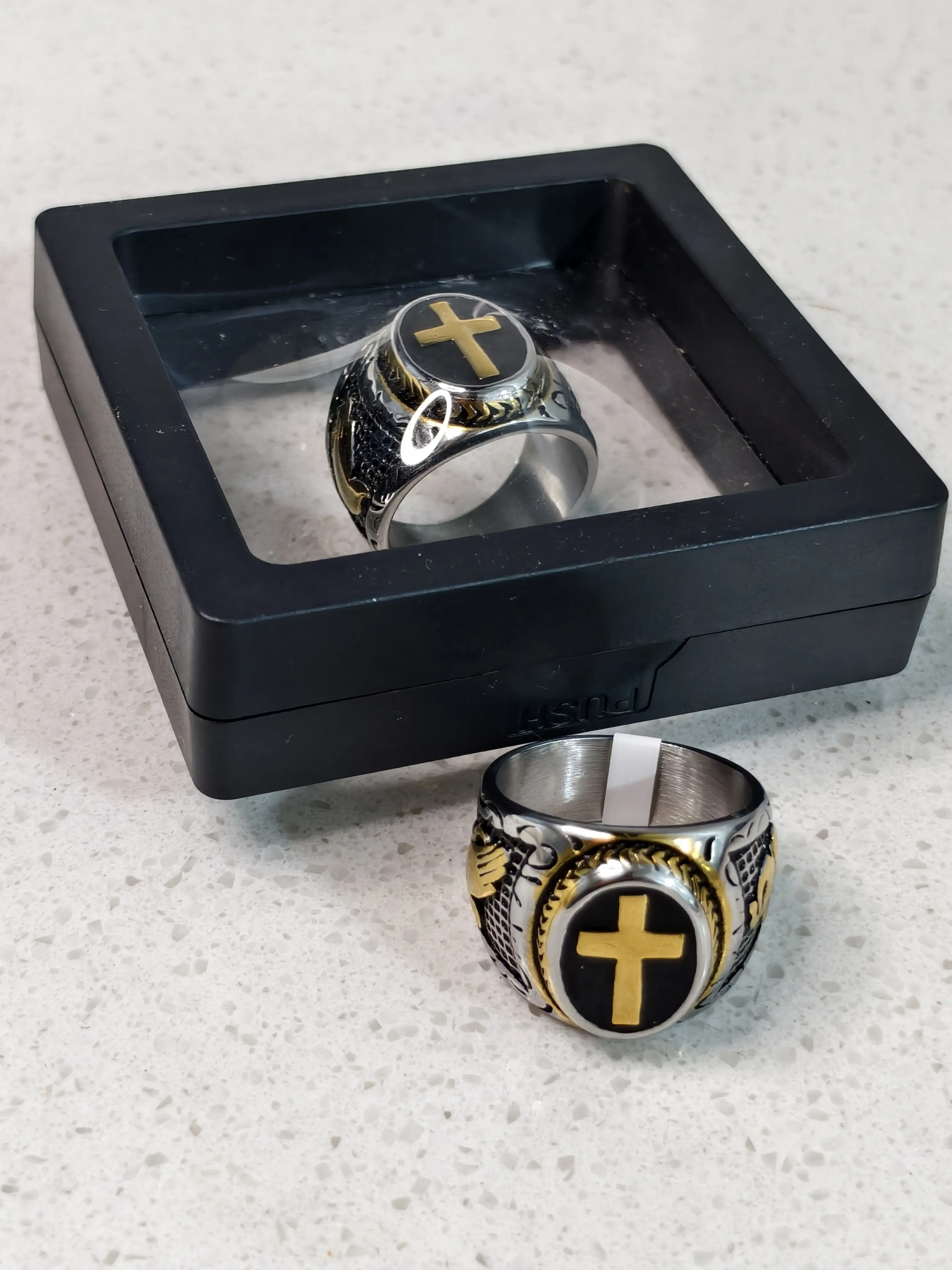 Great looking ring. Fits so well. Mine is a 12 and feels smooth, so smooth that you can't tell your wearing a ring. And its true to the size. Nice quality, not too heavy yet durable. Arrived early as well. I am highly satisfied with this purchase and recommend this product. I see no better way, then to have a cross ring that symbolizes eternal strength, which stands as a beacon of hope, love, and salvation for which I will be reminded every time I wear it.