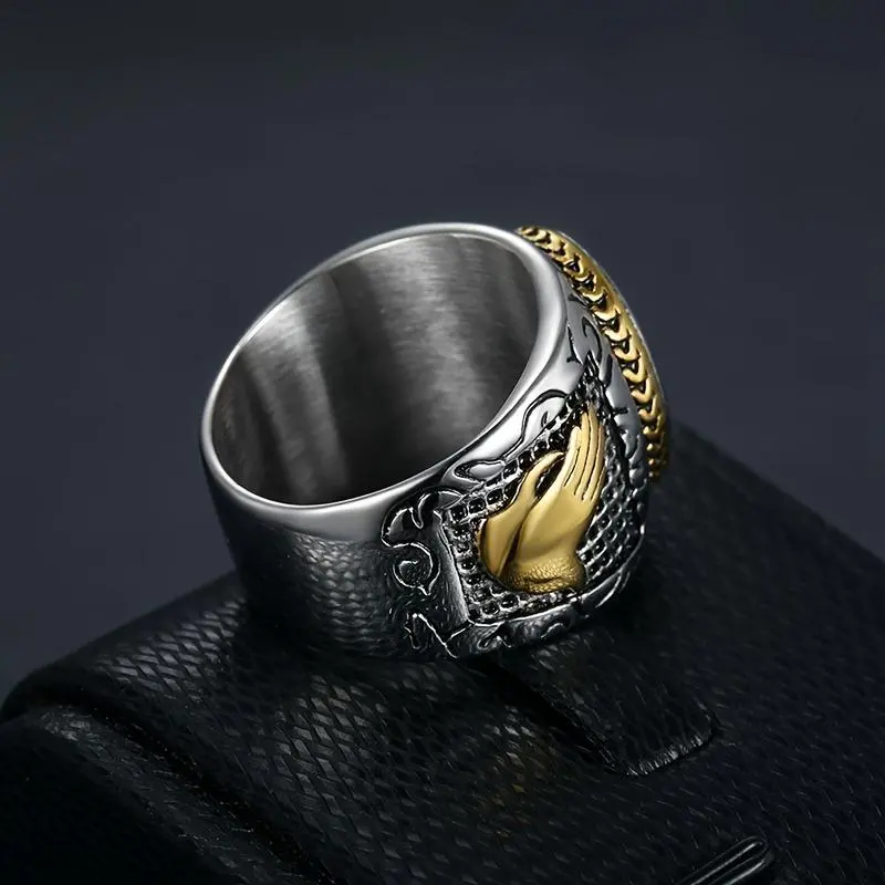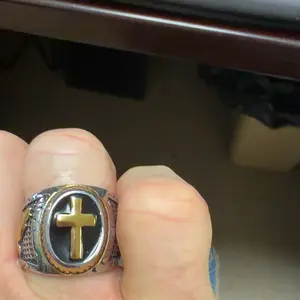 This is NOT what I ordered! I am VERY upset. This is a scam! This looks NOTHING like the ring above! I ordered the stainless Steele praying hands cross ring and got a plastic dog that barks.