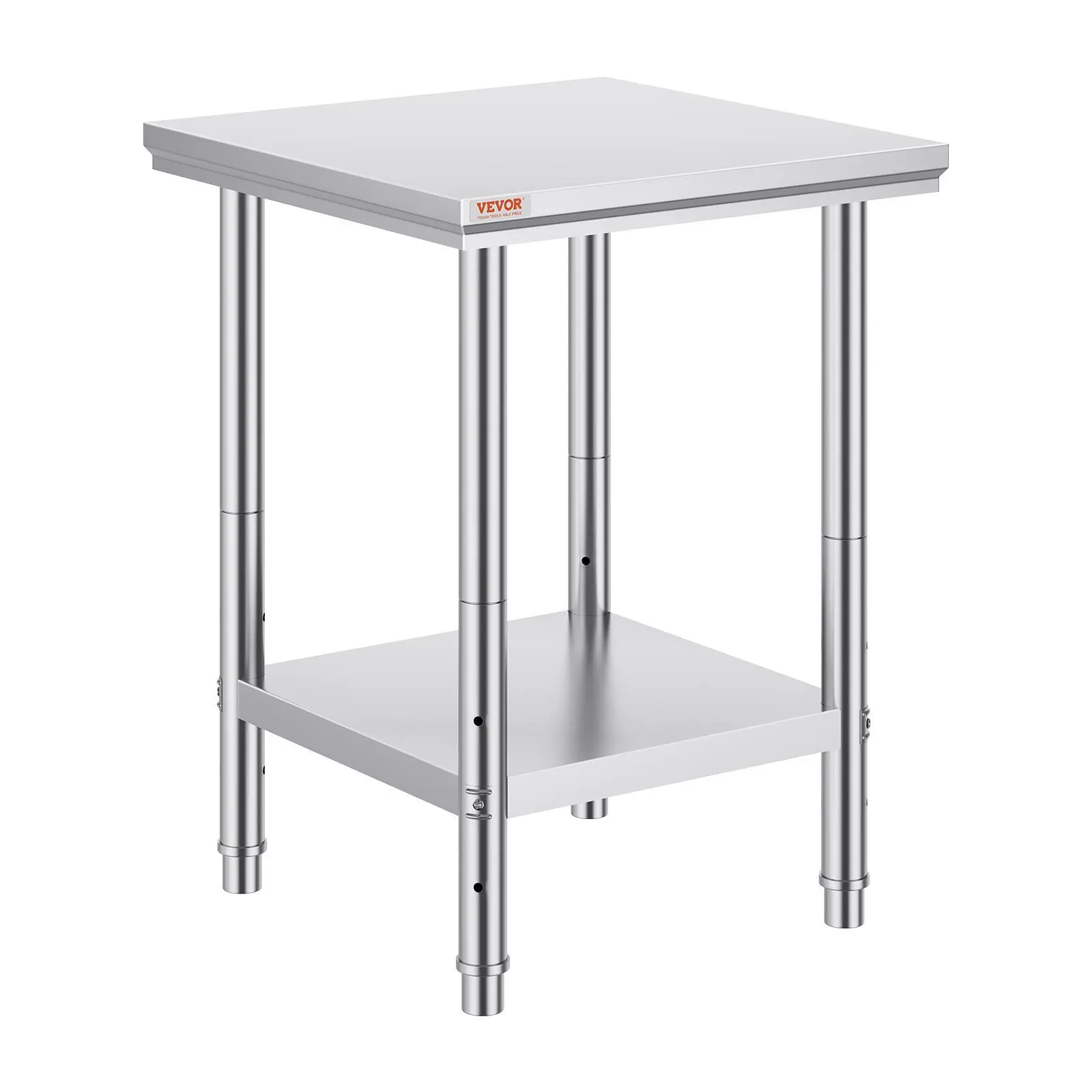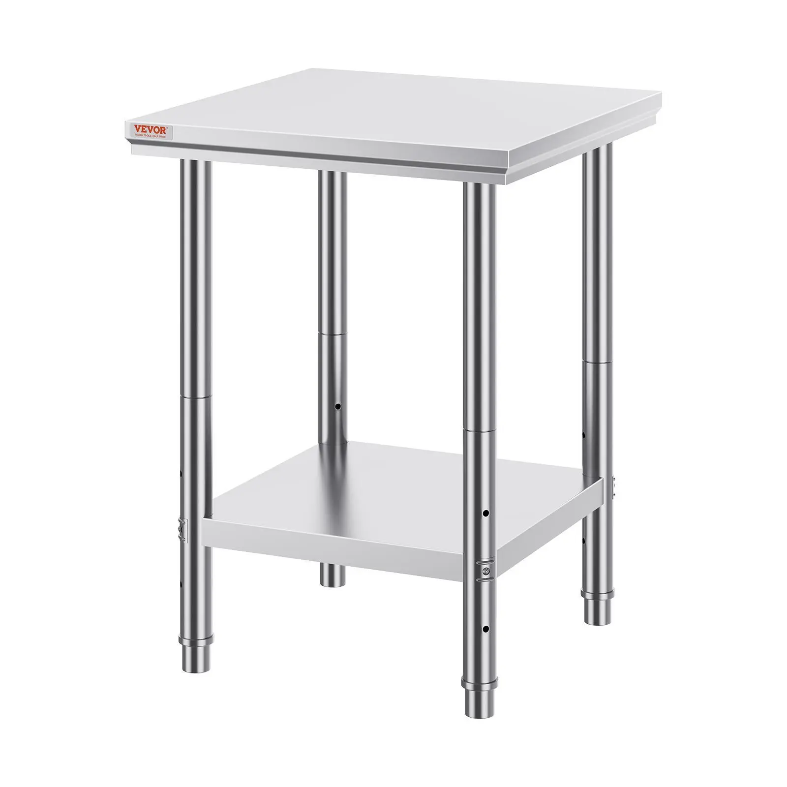 5. VEVOR Stainless Steel Prep Table, TikTokShopBlackFriday, 24 x 24 x 31 Inch, 700 lbs Load Capacity, Heavy Duty Metal Worktable with 3 Adjustable Height Levels, Commercial Workstation for Kitchen Garage Restaurant Backyard