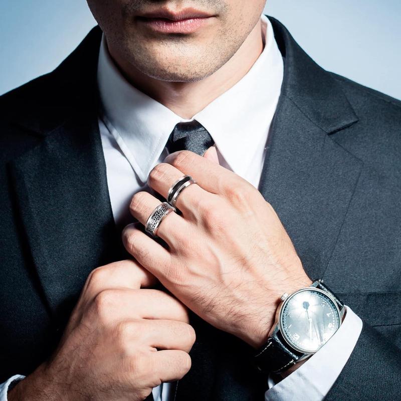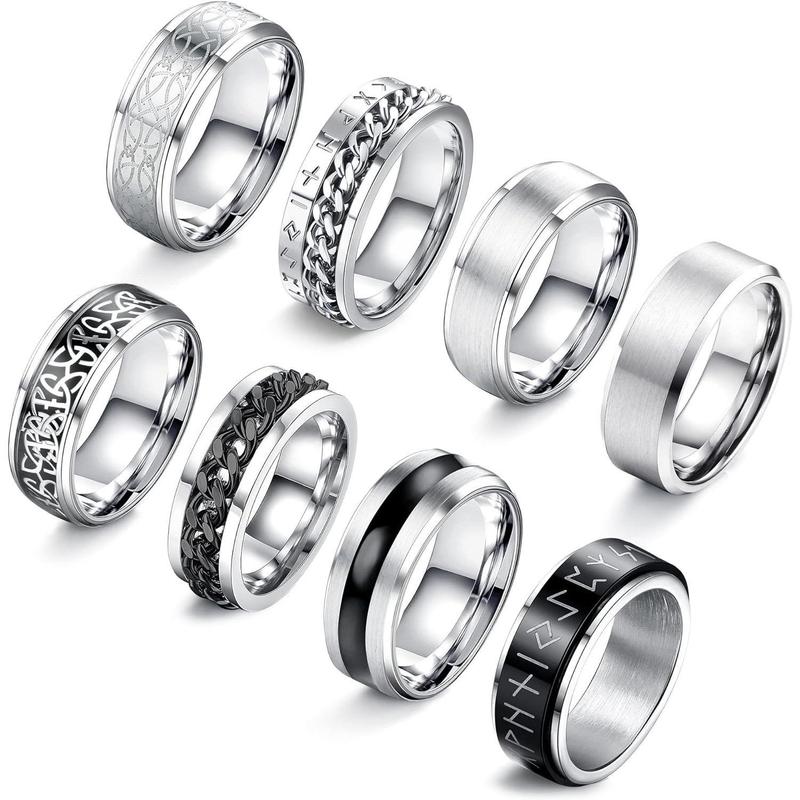 - Set of 8 stainless steel rings for men, perfect for wedding, engagement, or daily wear.