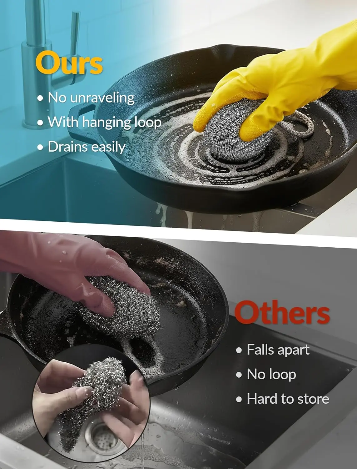 Durable & Rust-Resistant: Crafted from high-quality stainless steel, our scrubbers are tough, rustproof, and long-lasting. The tightly woven structure ensures they won’t fall apart easily while providing powerful cleaning performance on tough stains.