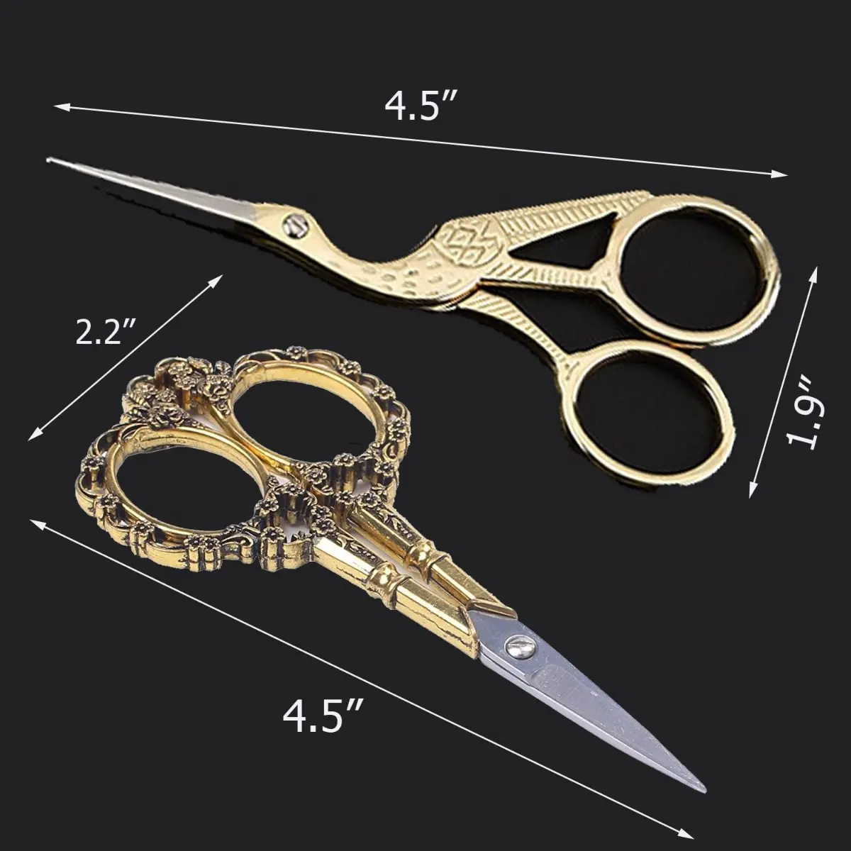 2 Pieces of Sewing Scissors with Stainless Steel Sharp Blades and Carving Handles, Suitable for Embroidery, Sewing, Handicrafts, Artworks, and Daily Use