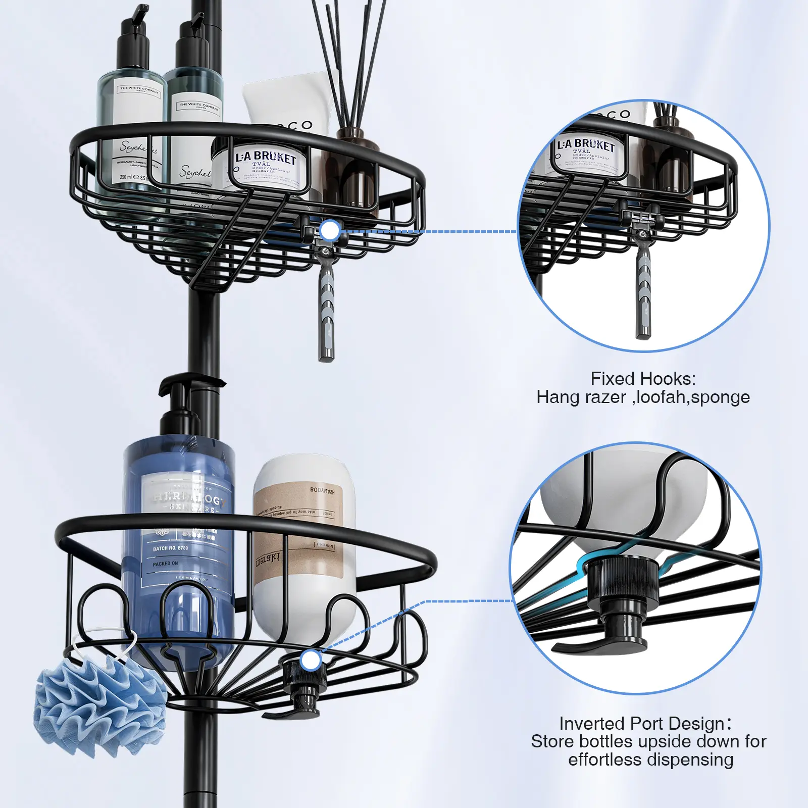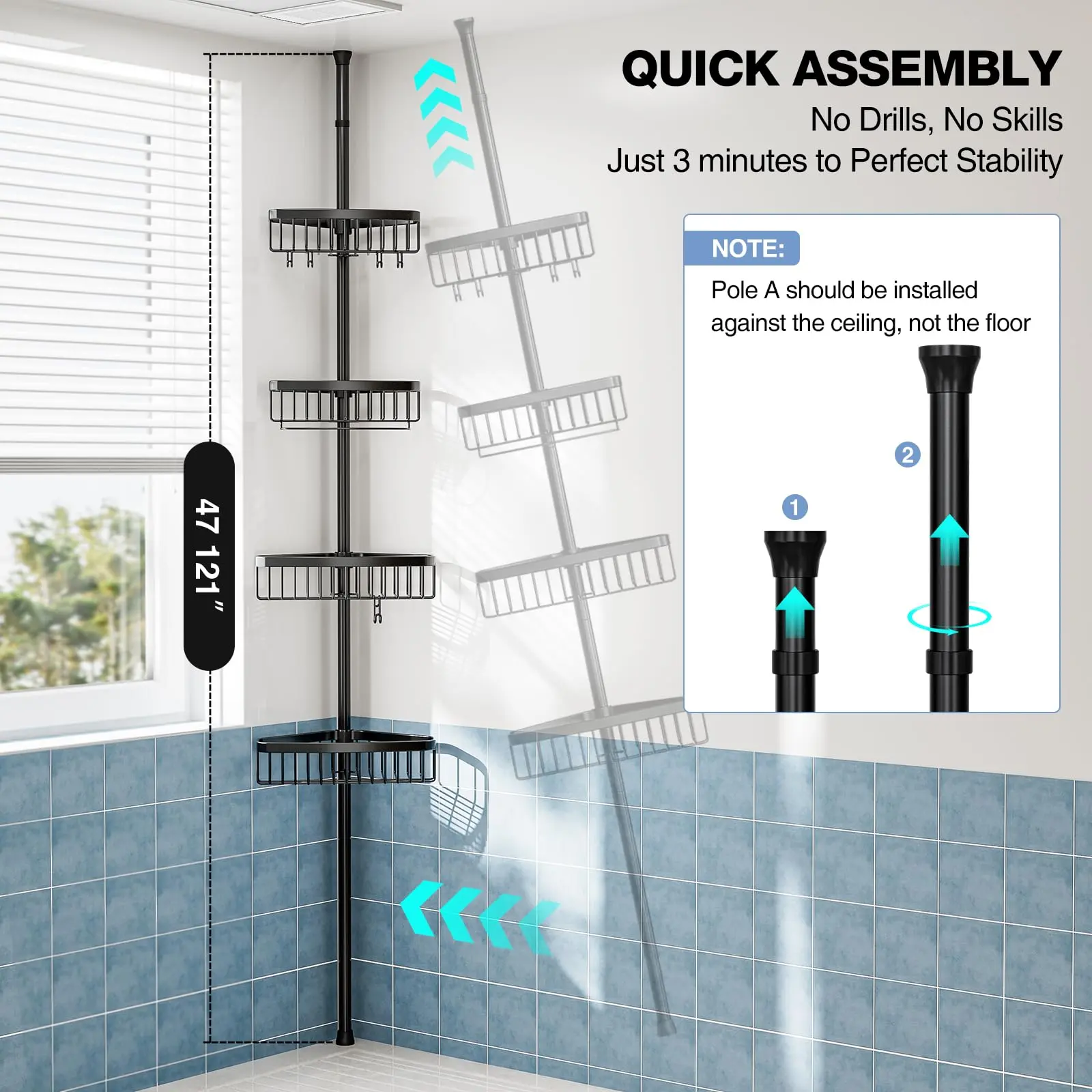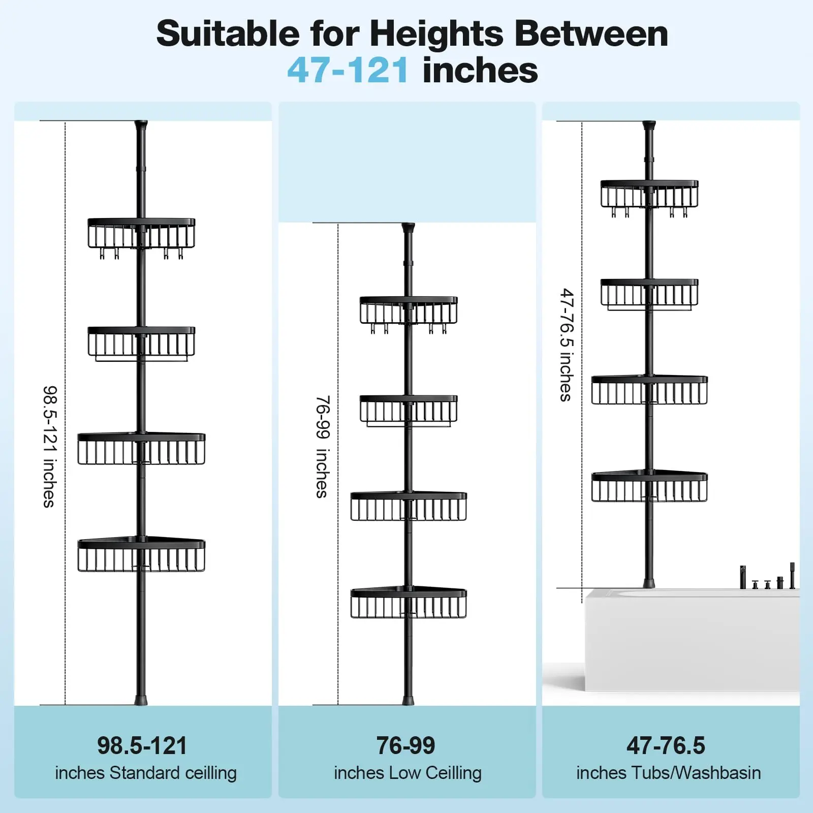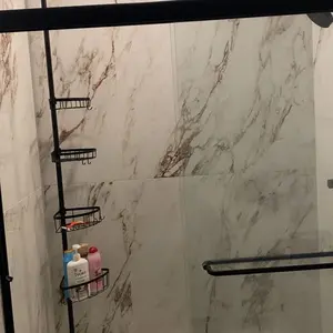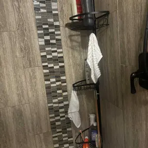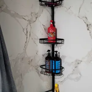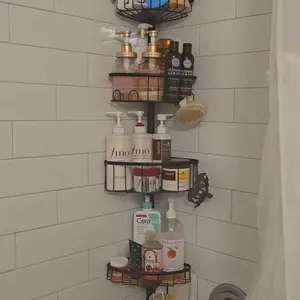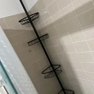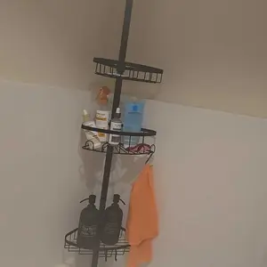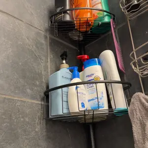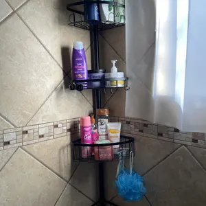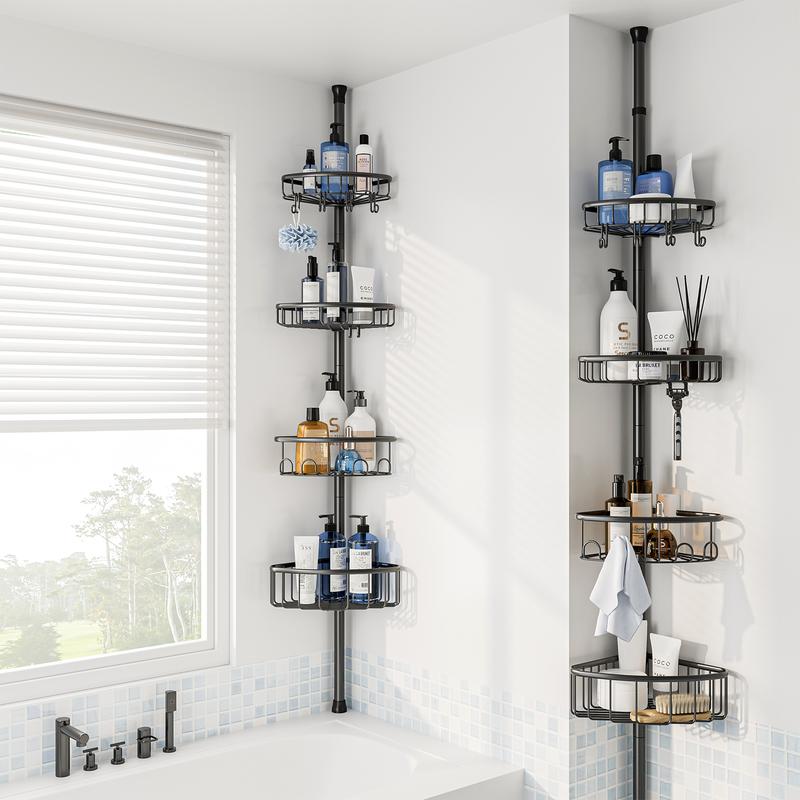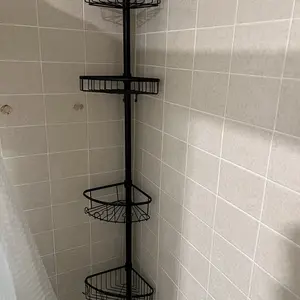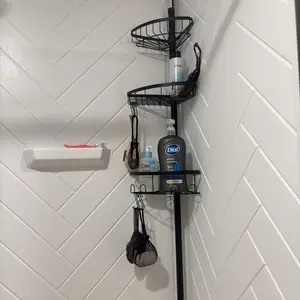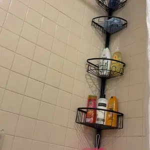 I’m really impressed with this corner shower caddy! The tension pole is strong and holds firmly in place without any slipping. It fits perfectly in the corner of my shower and makes great use of vertical space.