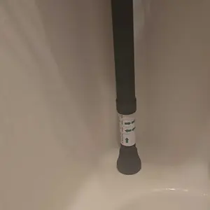 Perfect for my rv shower. Stayed put in transit to my destination. Its long enough to stand floor to ceiling. Love it.