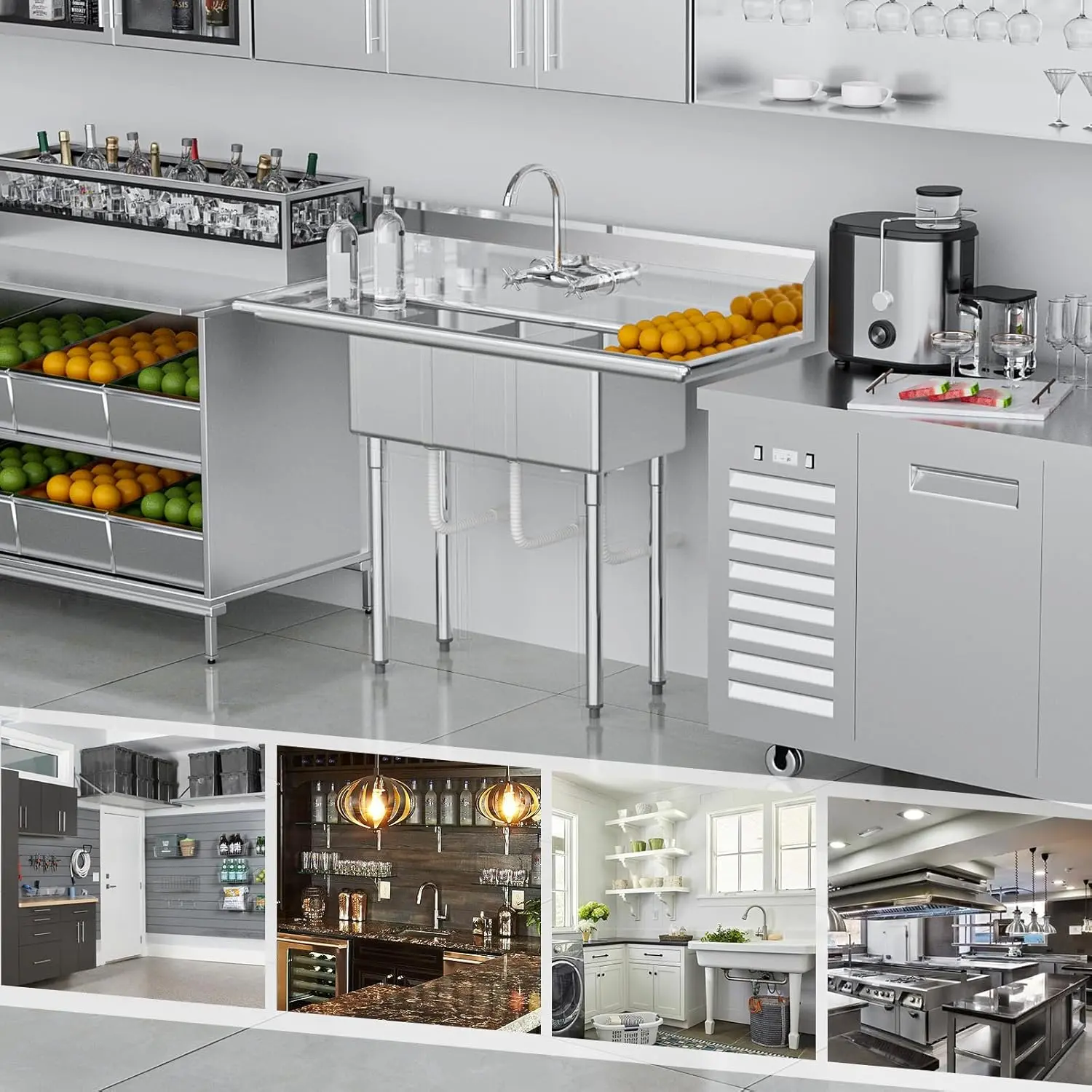 ROVSUN Commercial Sink, Stainless Steel Sink with 3 Compartment and 2 Sides Drain Rack, 20" x 54" x 43.5" Freestanding Utility Sink, Great for Restaurant Kitchen Laundry Room Garage SunroomROVSUN Commercial Sink, Stainless Steel Sink with 3 Compartment and 2 Sides Drain Rack, 20" x 54" x 43.5" Freestanding Utility Sink, Great for Restaurant Kitchen Laundry Room Garage Sunroom