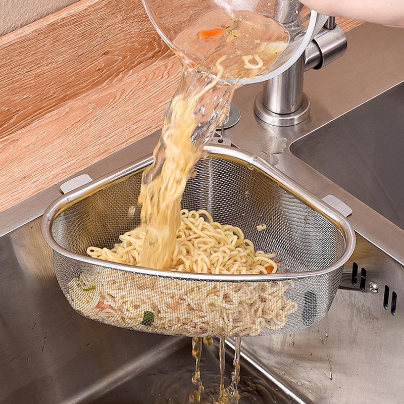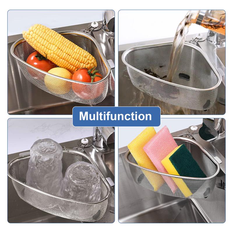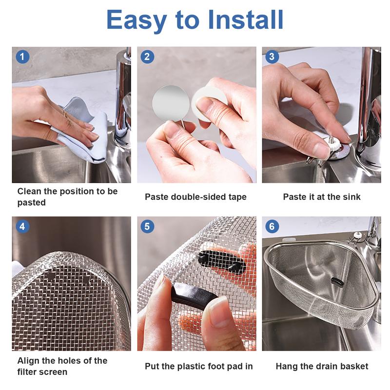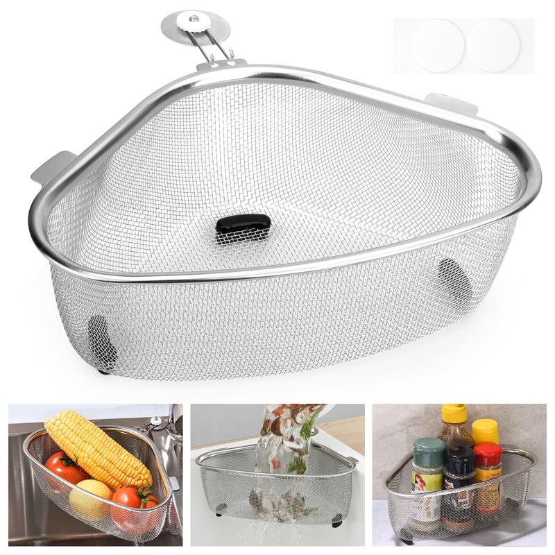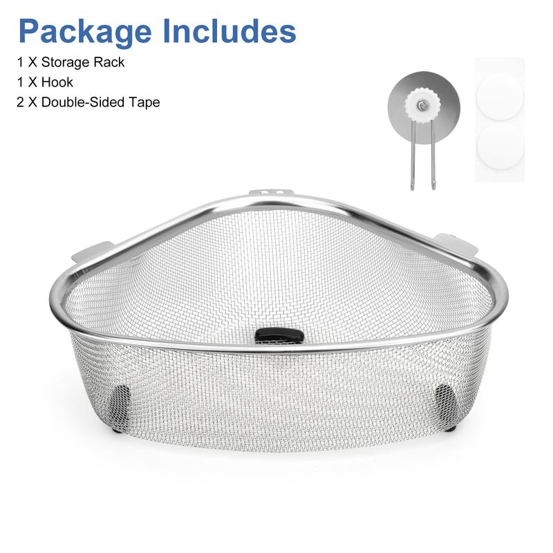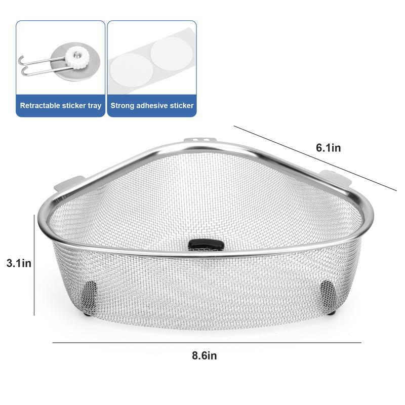 【Innovative Design 】 The Versatile Corner Sink Filter serves multiple purposes in your kitchen. Use it to filter food residues, vegetable washing residues, and tea residues, or as a drain basket after washing vegetables. It even doubles as a convenient storage solution for kitchen wet cleaning sponges, keeping your sink area clean and organized. Maximize space utilization and enjoy a clutter-free kitchen with this multi-functional sink accessory.
