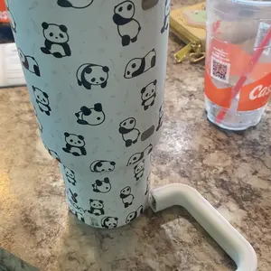 Love it is little it’s easy to use hold it like a 16 ounce can soda and I always have that have mermaid glass straws for some reason but yeah I know their kids size. My daughter can’t use anything that big yet and I just thought the pattern was adorable It’s easy when you don’t need much to drink you know.
