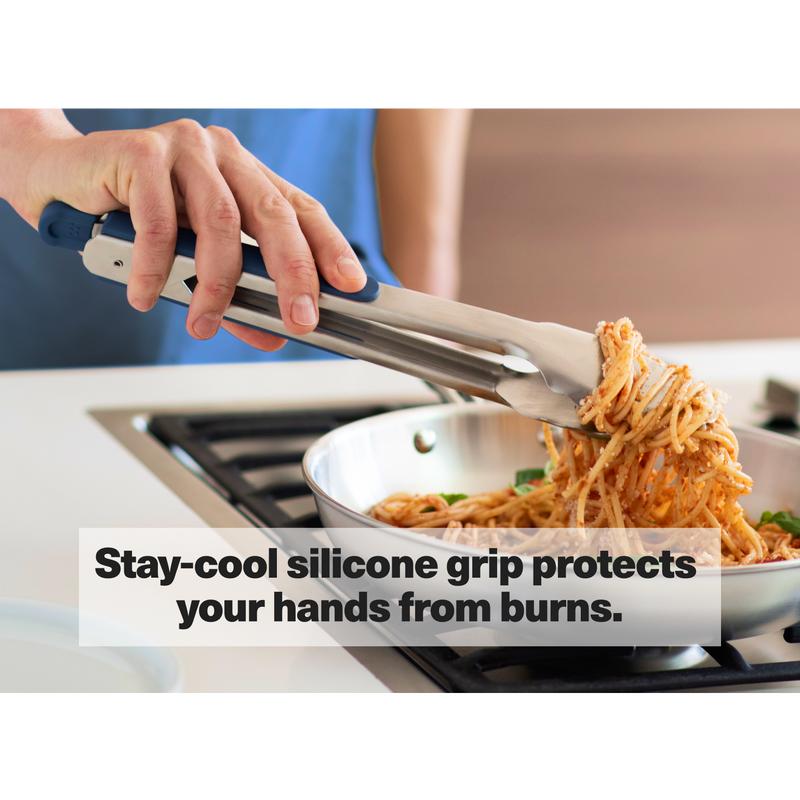 Purchased these as a replacement for my old tongs as the silicon tips melted. These work well with all of my Misen stainless and cast iron cookware. I don't use them on any non-stick cookware. These work well on our griddle and grill. I would have given this a 5 stor rating, but I wished the tongs were another few inches longer to reach the back of the grill easier. Still, matches all the other utensils from Misen and a good buy.