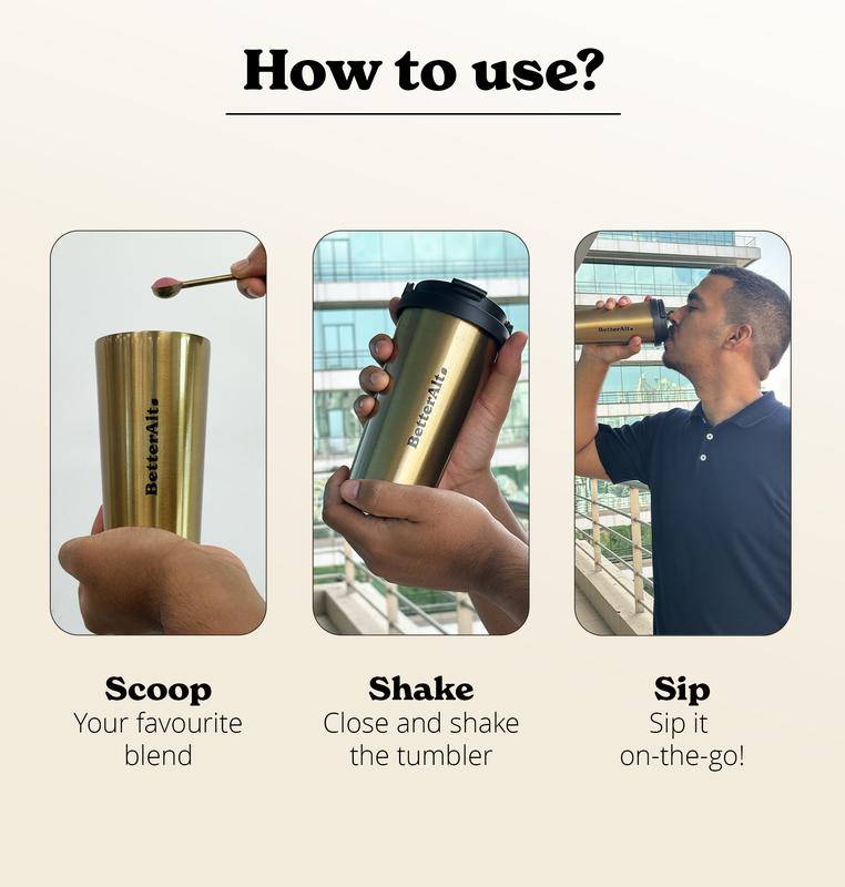 This on-the-go travel tumbler is perfect for your daily Ayurvedic blends.Simply scoop, shake and sip!Stainless SteelStays hot and cold for 8 hoursFull cover top to prevent spillsDishwasher safeIn-built strainerLeak-proofMade in India with love.