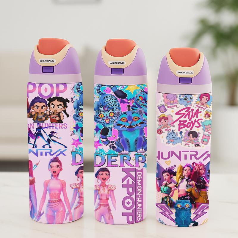 I purchased the 19-oz bottle. Beyond the amazing visuals, this bottle appears well-designed for practical use on the go. It provides a great contrast to the bright graphics, I recommend getting this water bottle for your kiddos or yourself who love K-pop Demon Hunters.
