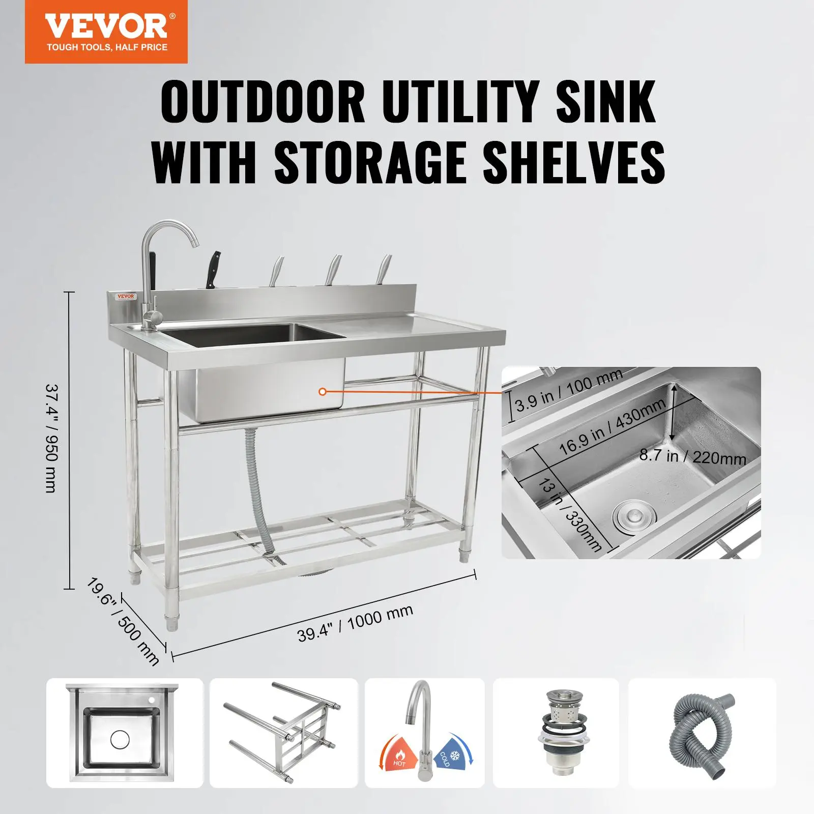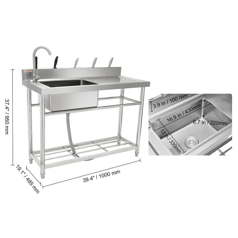 • Stainless Steel Sink: This sink is made of high-quality stainless steel, ensuring excellent corrosion resistance, oxidation resistance, and wear resistance. Its all-metal construction guarantees a longer lifespan in most environments. The adjustable table legs provide stability even on uneven surfaces.
