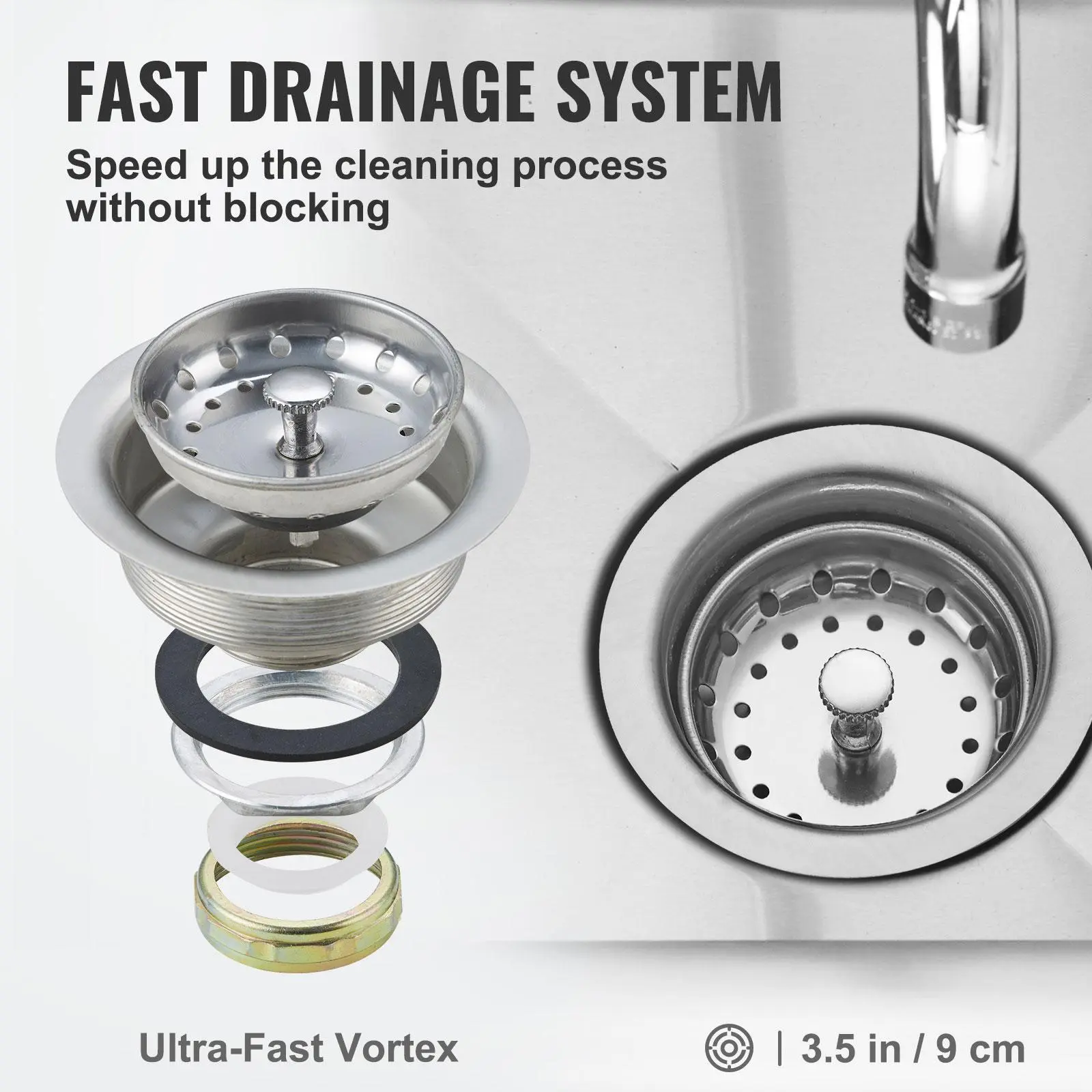 • Utility Sink for Commercial Use: This stainless prep sink is easy to assemble and includes all necessary accessories, with premium packaging. It is designed to efficiently accommodate fruits and vegetables, making washing more convenient. The sink suits various settings, such as commercial kitchens, laundry rooms, bars, restaurants, and garages. Tips: For your security, it is recommended to wear gloves during installation.