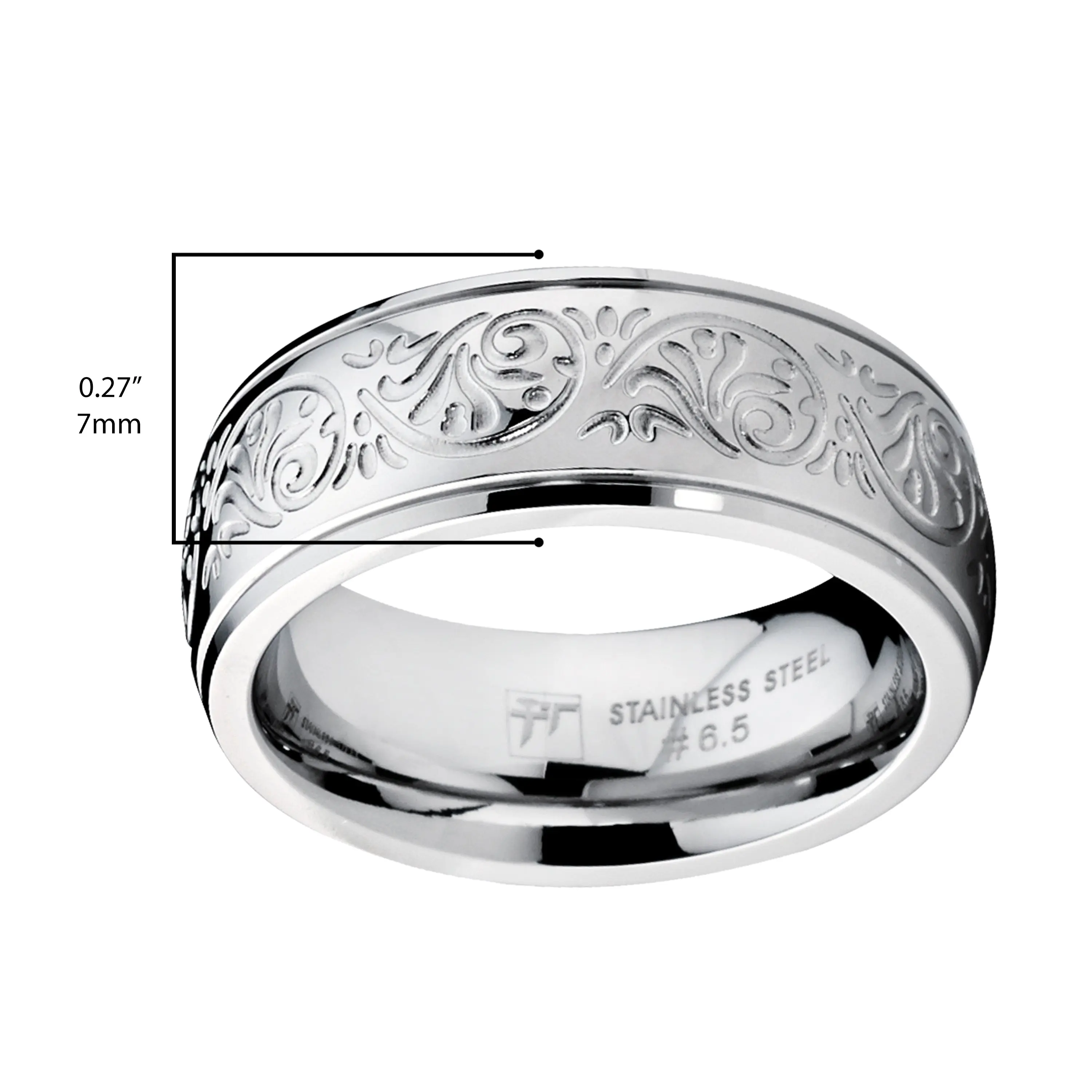 Love the comfort of this band! I like a band that is low profile & doesn’t catch on items, but a band that also catches the eye as attractive. The etching is delicate and pretty.