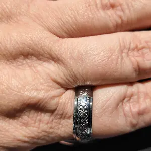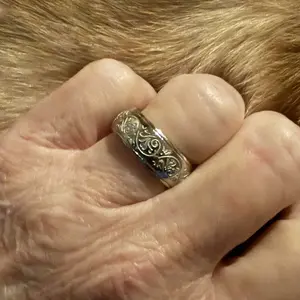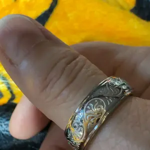 Very nice band ring with beautiful engraving. Quality and looks good on. I purchased for a pinky ring