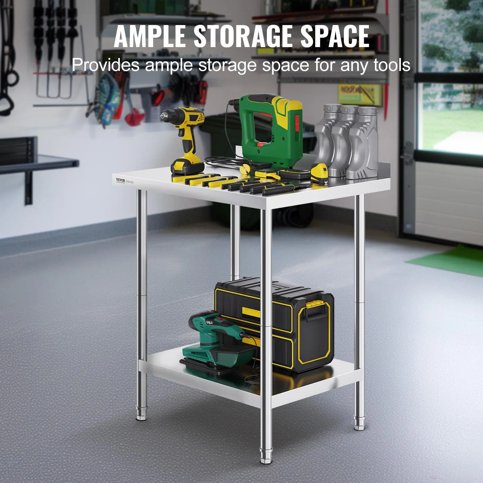 5. VEVOR 24 x 30 x 36 Inch Stainless Steel Work Table, Commercial Food Prep Worktable Heavy Duty Prep Worktable, Metal Work Table with Adjustable Height for Restaurant, Home and Hotel