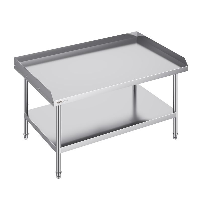 • User-Friendly Design: Featuring 3-level adjustable shelves, this work table offers the most user-friendly and practical functionality. Simply adjust the shelf height with screws to accommodate items of different sizes. The 2-inch edge backsplash prevents valuable equipment and supplies from sliding off the table and also protects against water splashes.