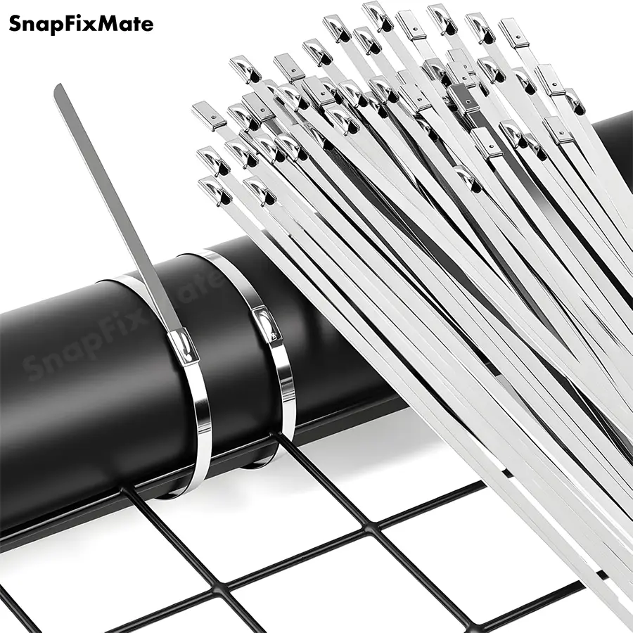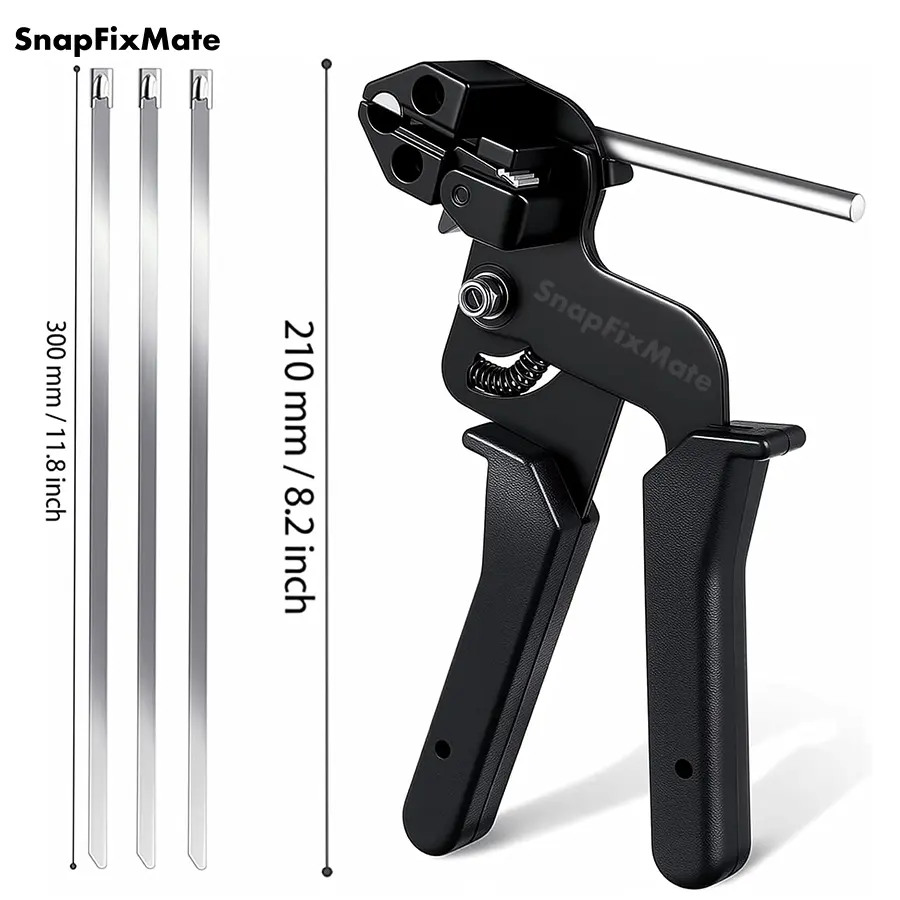 ·Great Value for Money Tool Kit: Snapfixmate Metal zip tie tool kit includes metal zip tie gun and 100pcs 11.8inch (4.6mm X 300mm) stainless steel cable ties, metal zip tie cutter is good, stable structure, long service life. works with any length of cable tie wrap, and supports cable ties with a width of up to 0.47 in (12 mm) and a thickness of up to 0.01 in (0.3 mm).