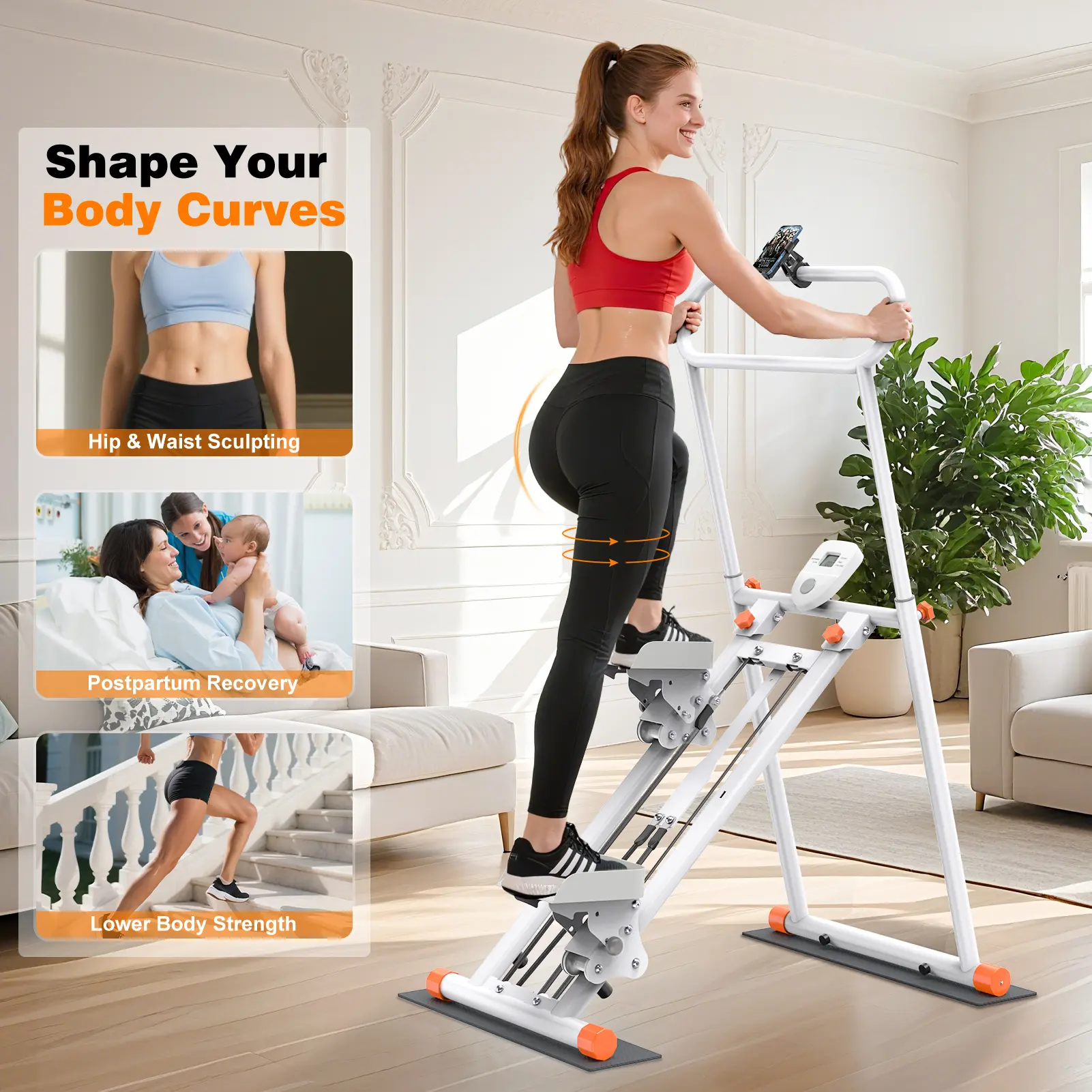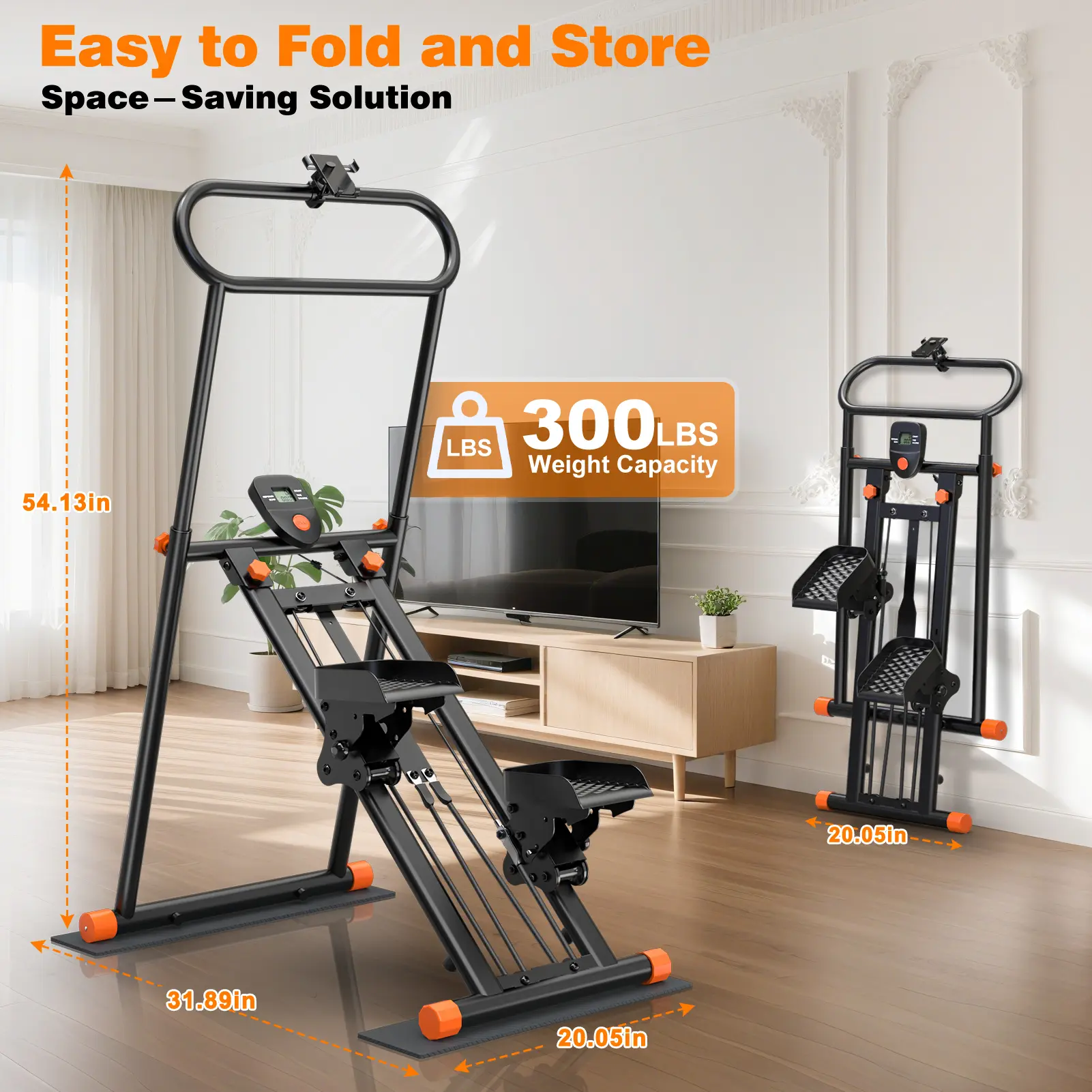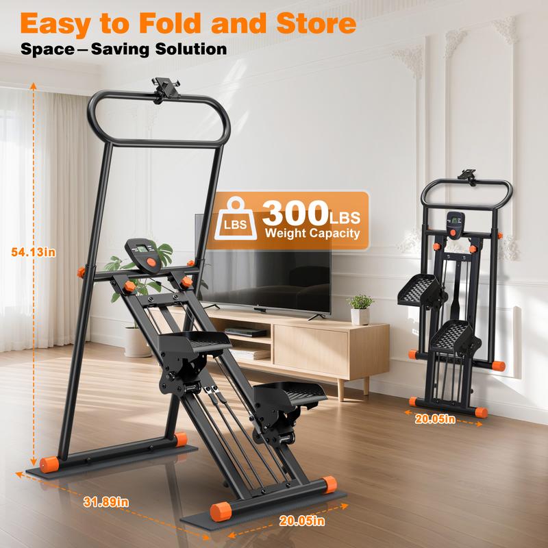 Foldable Design: This vertical stair stepper for exercose at home folds easily for storage. Tuck it under your bed or in a corner ideal for home gyms, it just need a small space!