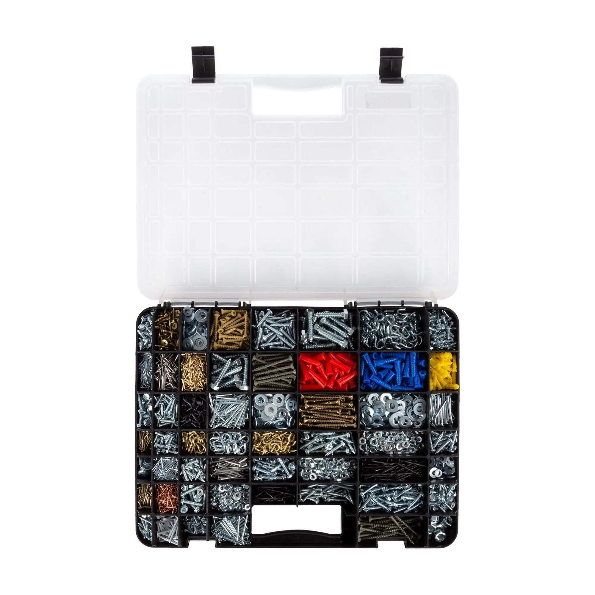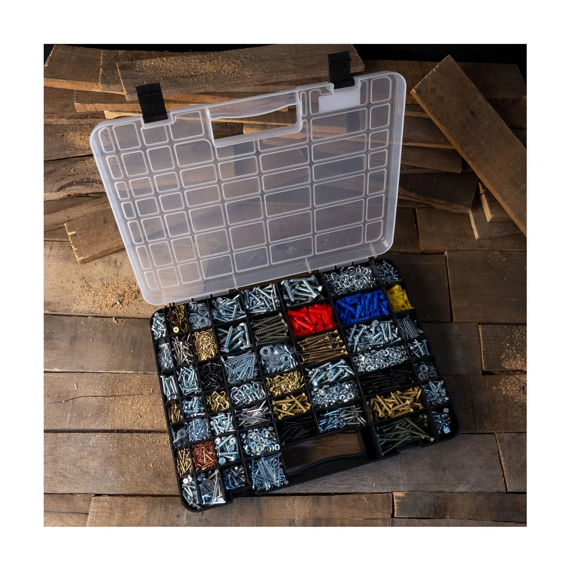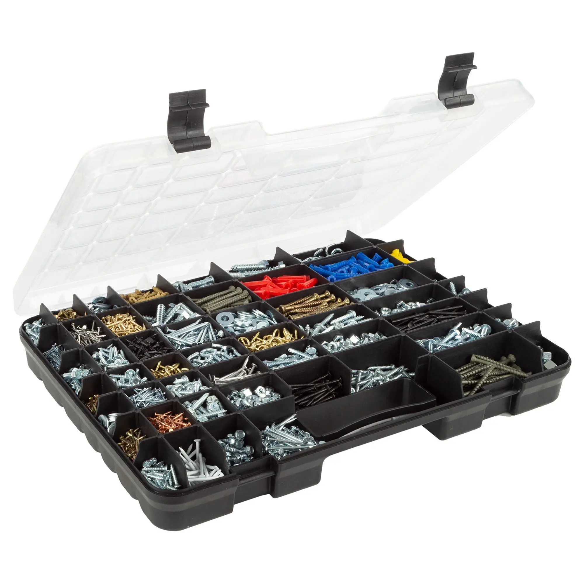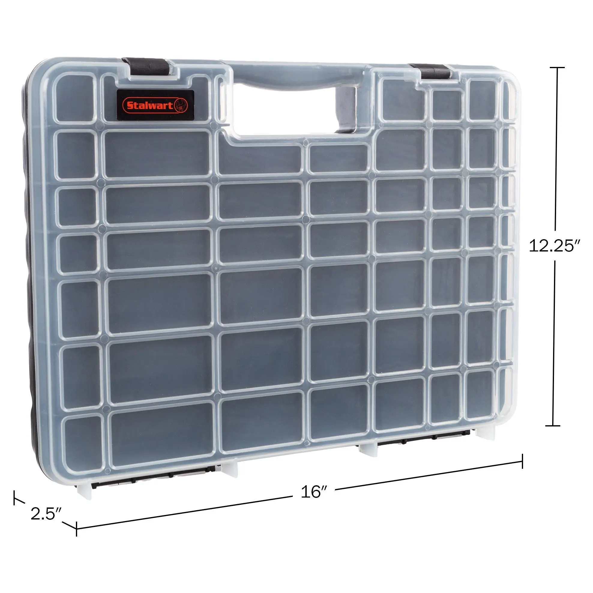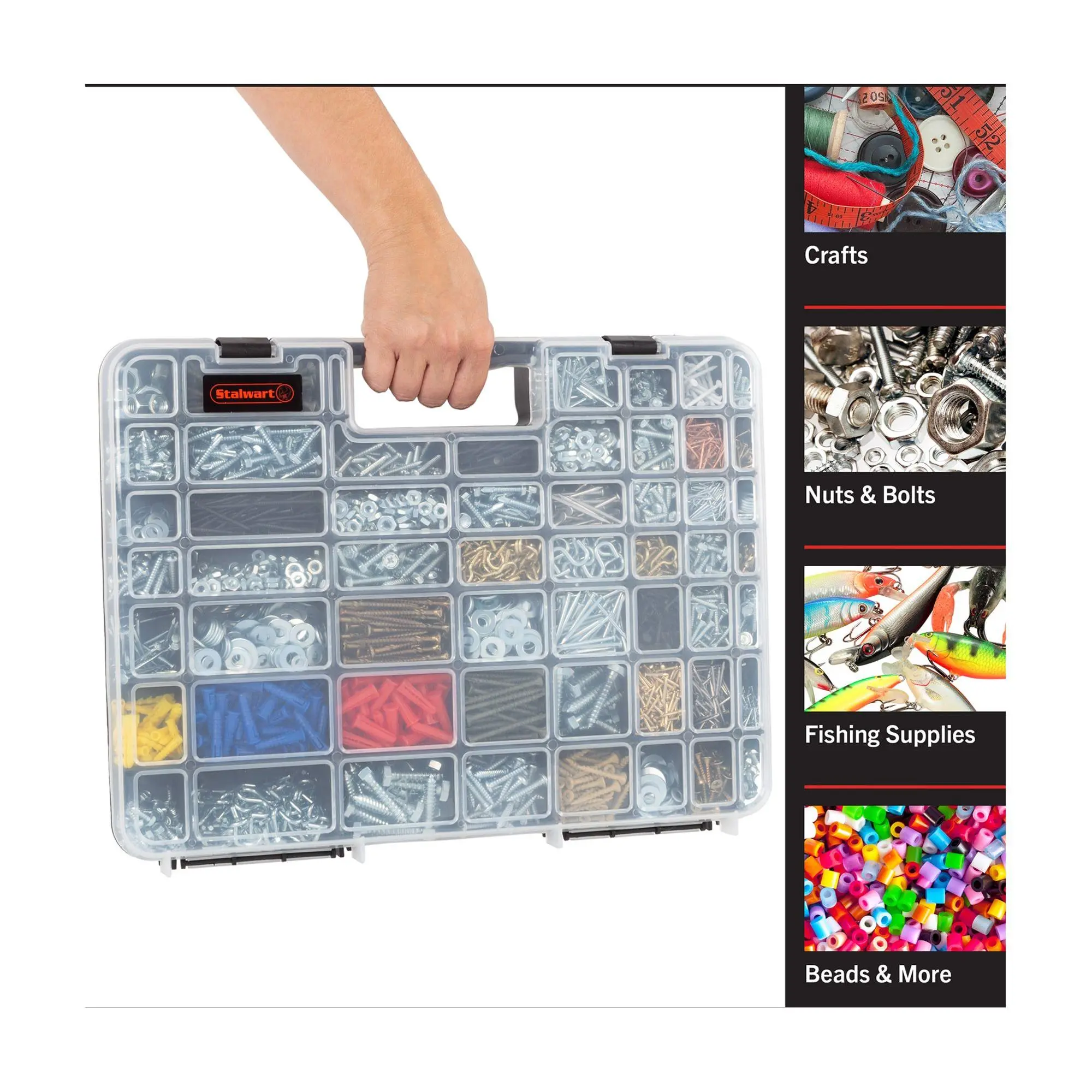 Keep your workspace, craft room, or garage meticulously organized with this multi-sectional tool box. This versatile organizer is a game-changer for anyone looking to declutter and categorize small items like screws, nails, or beads, thanks to its assortment of compact compartments. With a clear lid for easy viewing and secure latches to keep contents in place, this portable toolbox is as practical as it is durable. From Stalwart.