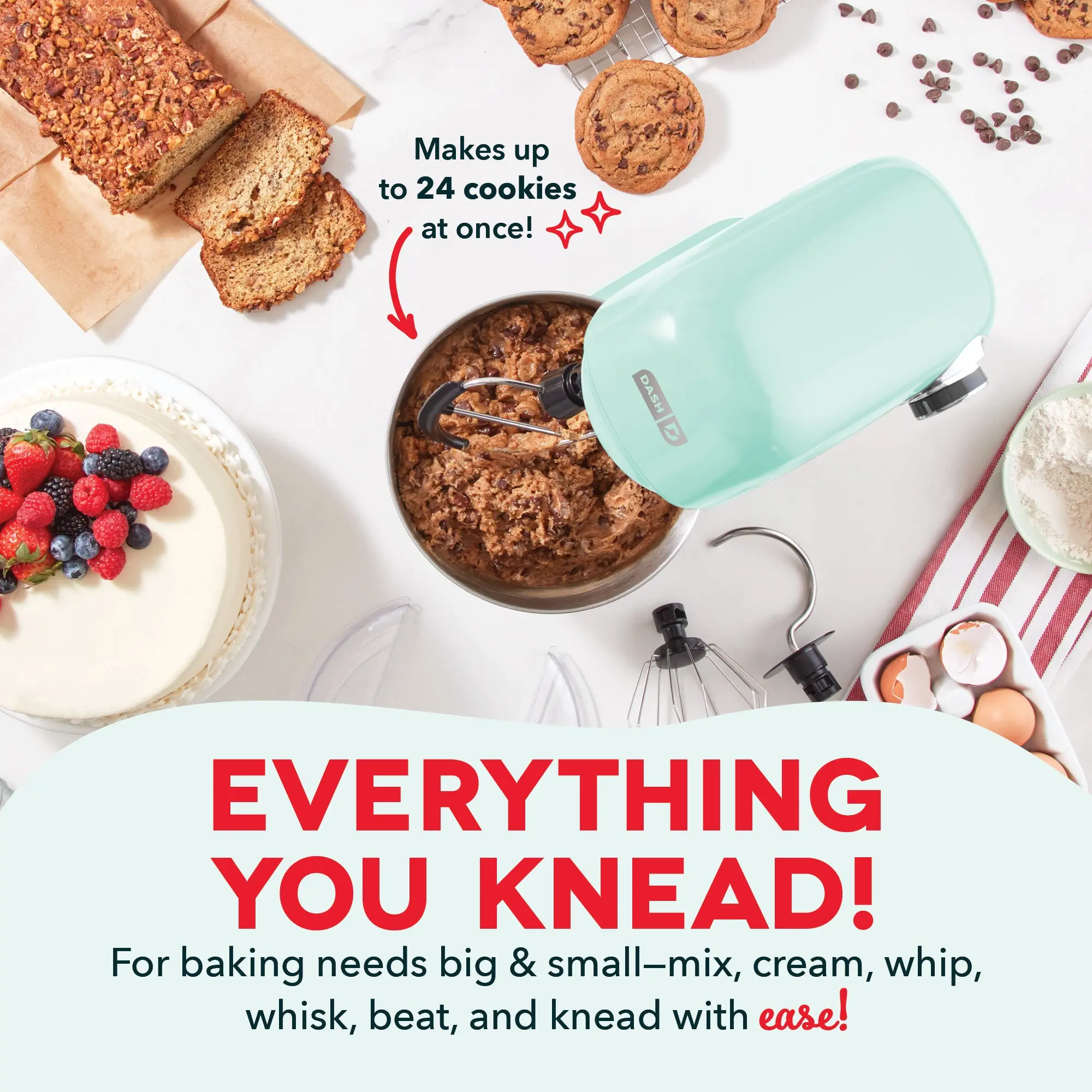 Introducing the Dash 3.5 QT Stand Mixer, your baking buddy you never knew you kneaded! This versatile mixer is perfect for both big and small baking needs, making it an essential tool for your kitchen.