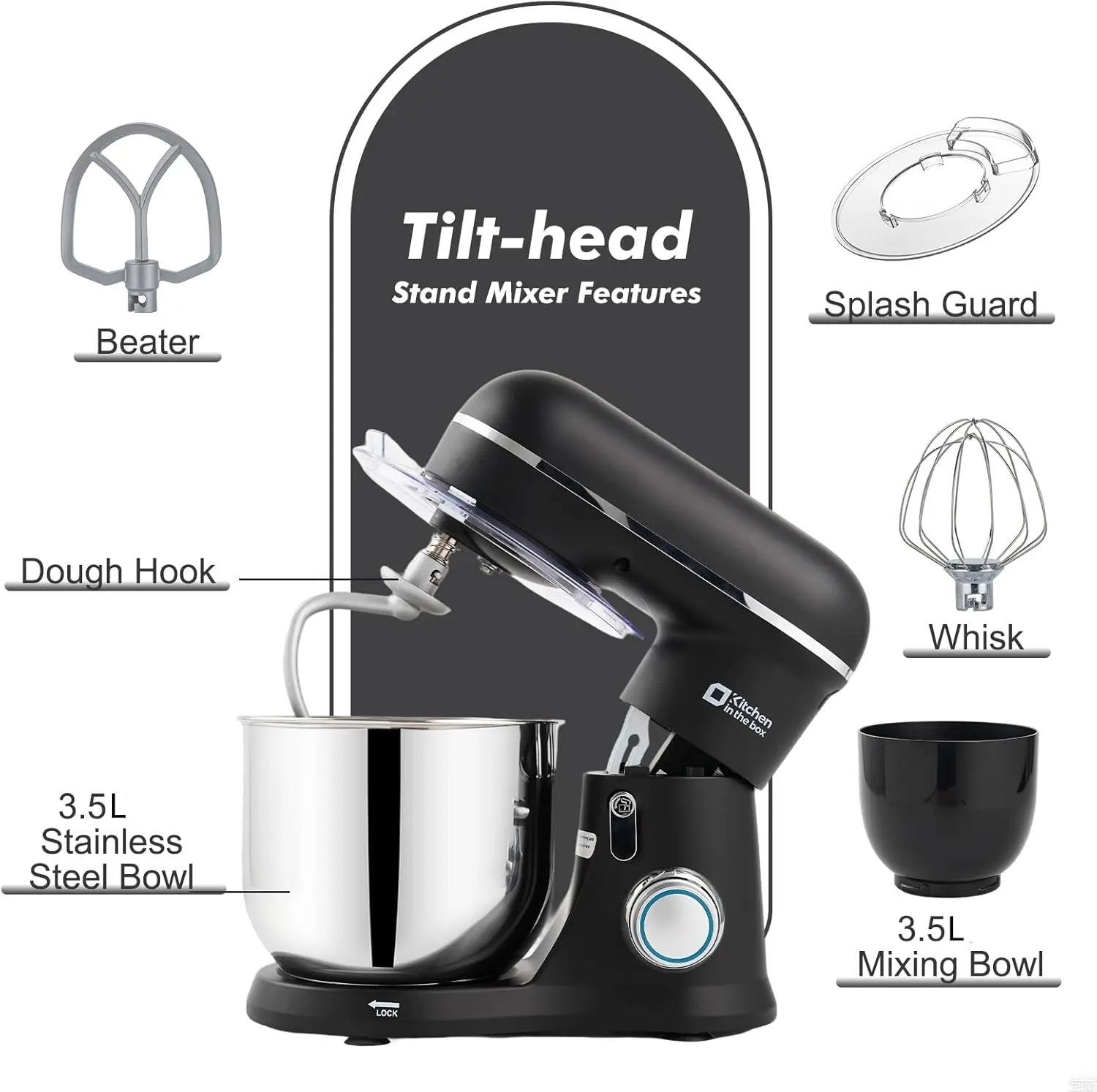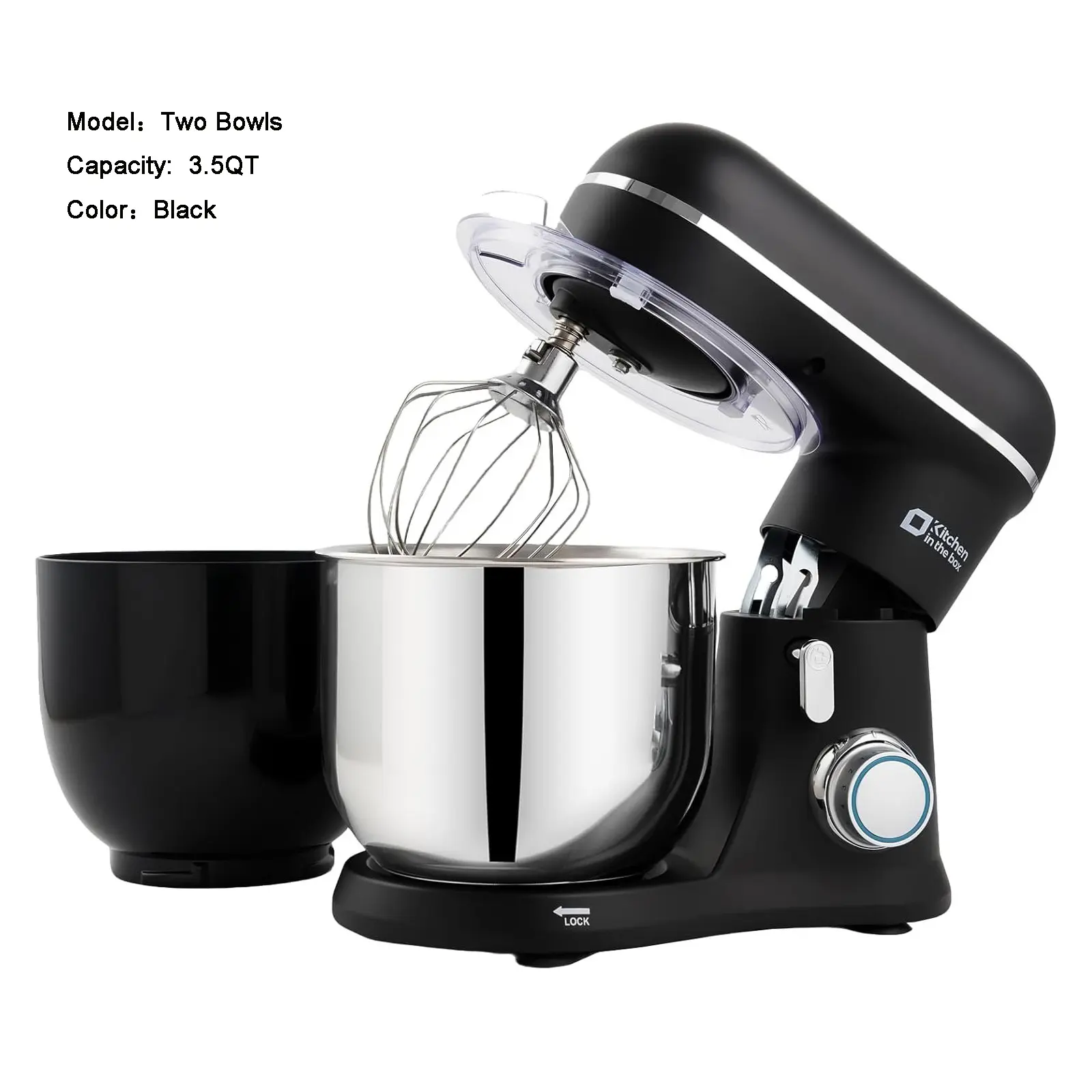 ·3.5QT + 3.5QT Dual Bowls: Comes with both a stainless steel and a plastic 3.5-quart mixing bowl—perfect for small batches, prep-and-mix convenience, and quick swaps while baking. Great for beginners, couples, or small households.