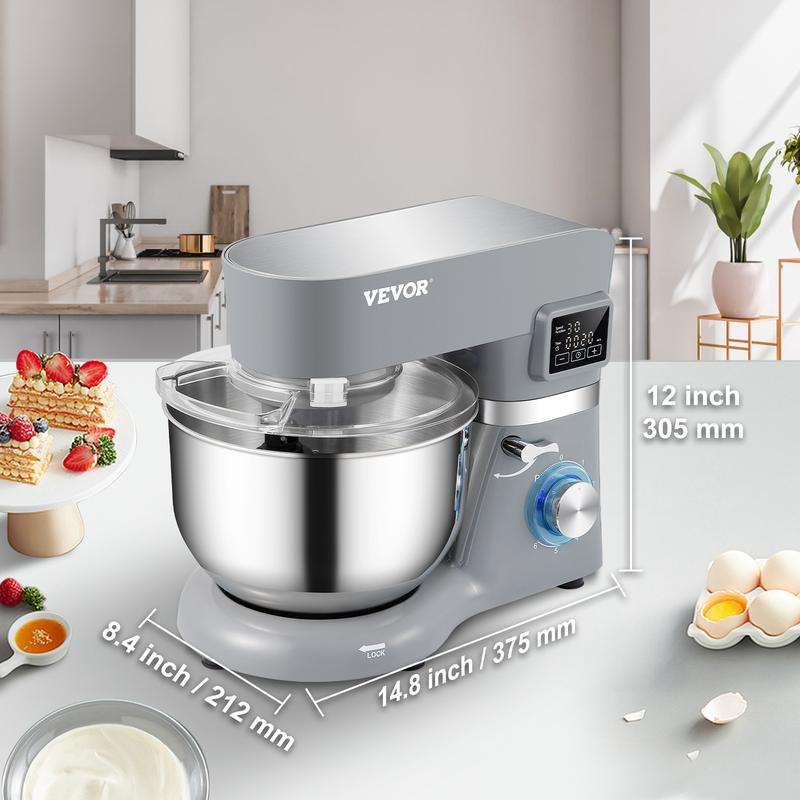 • Never Worry About Mixing: Are you ready to mix! Don't stop! The planetary mixing and stirring mechanisms greatly contribute to full contact between the beater and the bowl's inner wall. The flat beater is designed with a soft silicone edge, which can effortlessly scrape off the sticky ingredients on the bowl and then mix them together. It doesn't even matter if they are left on the sides or at the bottom. Don't hesitate to knead dough and various bakery essentials with VEVOR's commercial mixer.