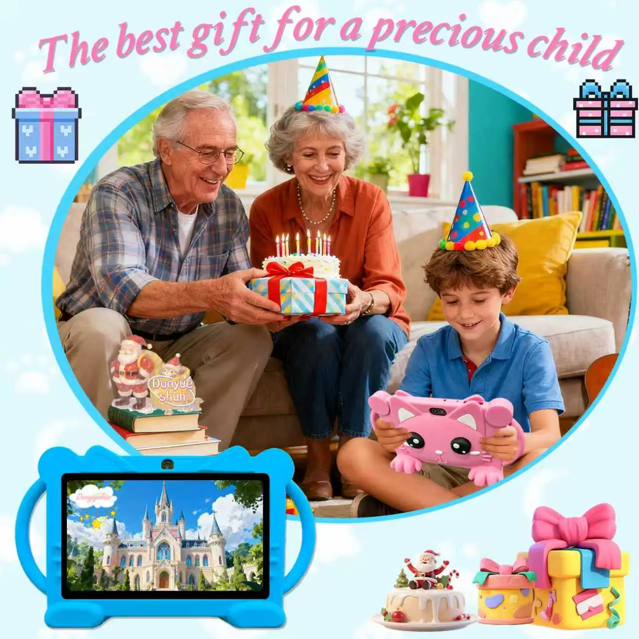 Standable and portable design7 Inch Android Wifi Tablet PC, Student Tablets, Parental Control, Rechargeable Battery, Dual Camera, Home & School Use, Kids' Learning Companion, Learning Entertainment Tablet, /blue