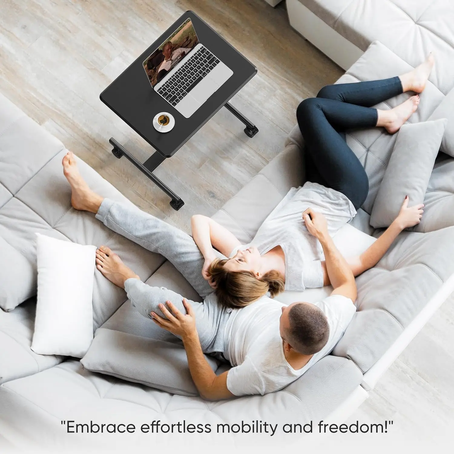 ·【Premium Material】The mobile laptop desk legs are made of durable thickened steel frames, making the desk wear well, helping prevent scratches, and ensuring superior stability and safety.4 flexible wheels let you enjoy smooth-gliding mobility with silent casters, 2 of which are lockable to keep the portable standing desk stable. The 360°rotation wheels make it easy to move evenly on the carpet.