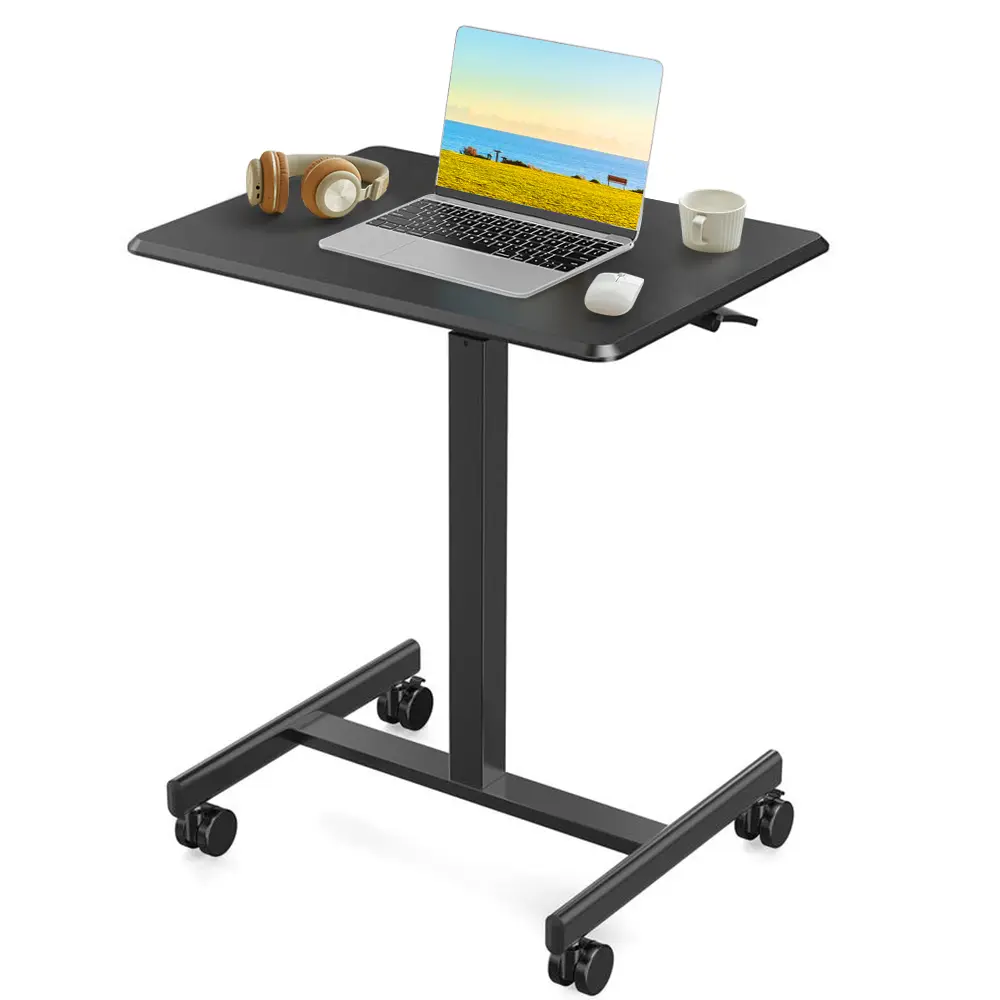 ·【Height Adjustable】 Driven by the powerful gas spring system when you press the handle beside the table, the height of this mobile standing desk with wheels can be changed from 28.5'' to 42.5'' in seconds with fast and smooth lifting, which can be a good solution to help you get rid of long sitting and enjoy health benefits of the small standing desk.