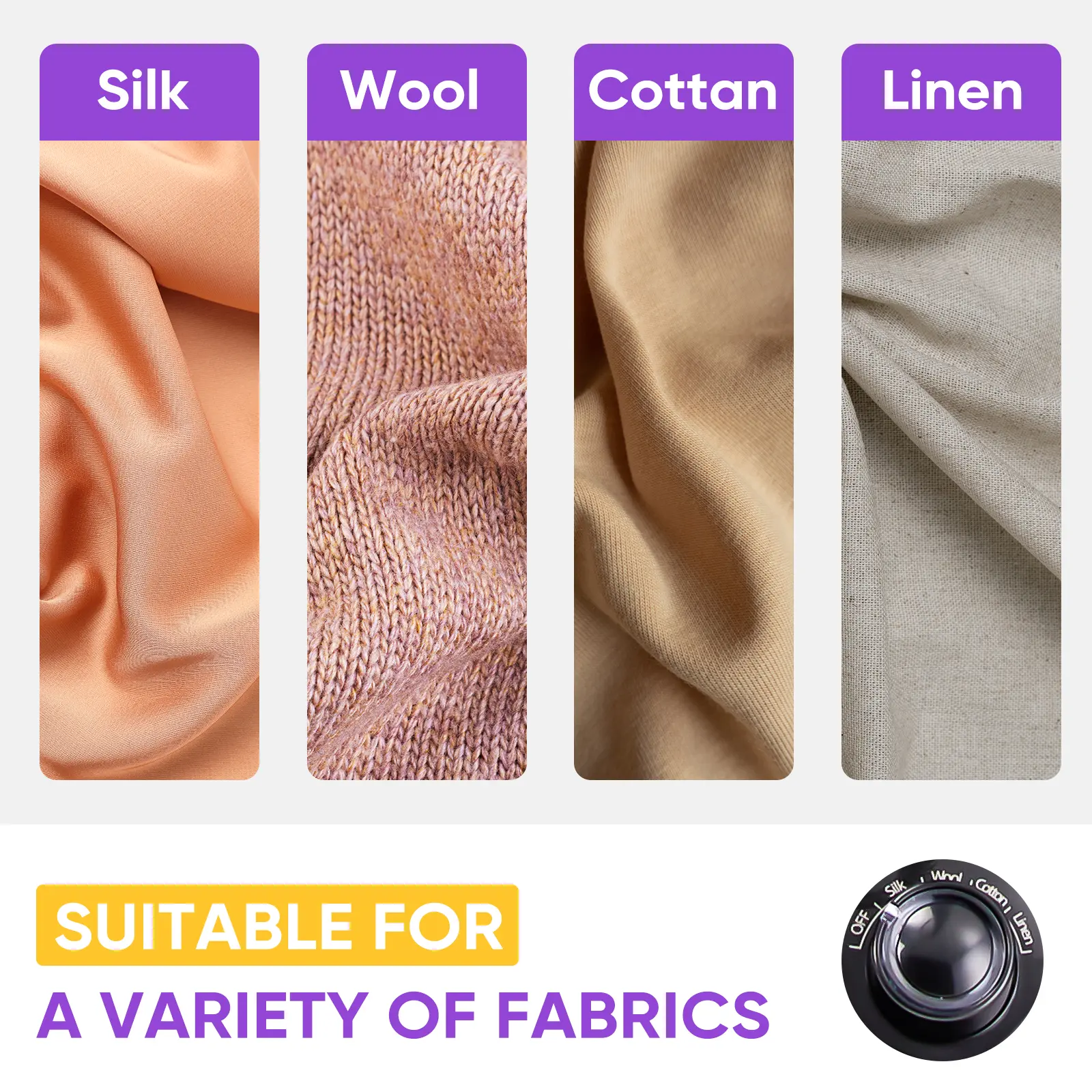 ·STEAM STOPPER ADJUSTABLE: Powerful yet gentle steamer removes wrinkles from a wide range of garments such as suits, wedding gowns, and household fabrics, depending on the material: the Wool Silk Cottan Linen, with four different tonnages, is perfect for both commercial and home use.
