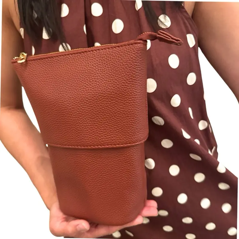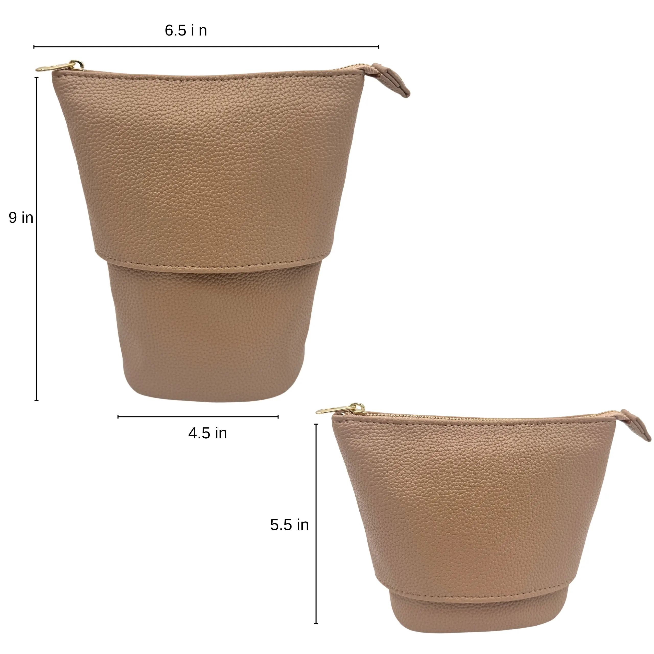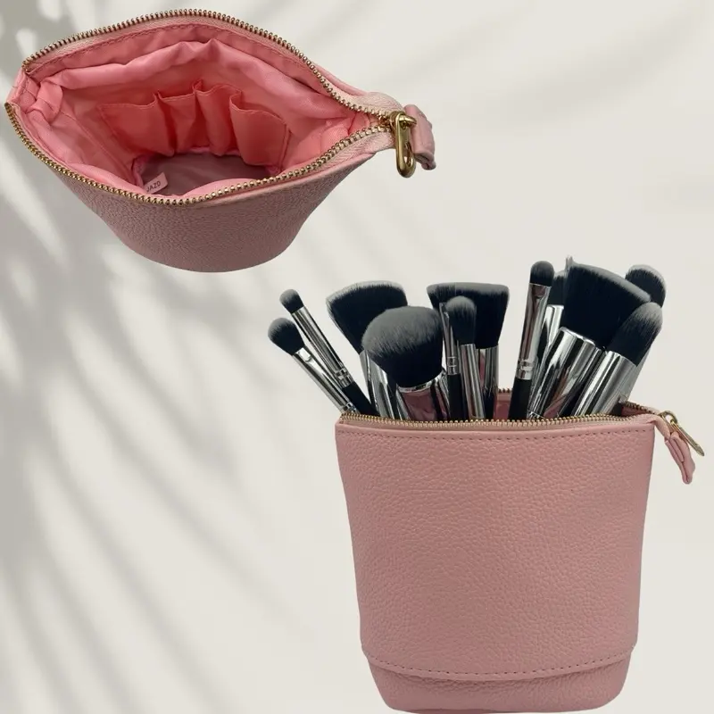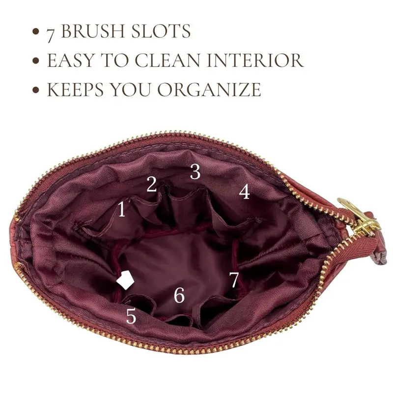 This is one of the best brush bags ever even your makeup can fit the o my thing is I brought burgundy which has a brown interior making it hard to see the slits where the brushes go but other than that it’s fantastic and the zipper makes it spill proof! The slide down effect is a great added bonus to seeing what’s in the pouch!